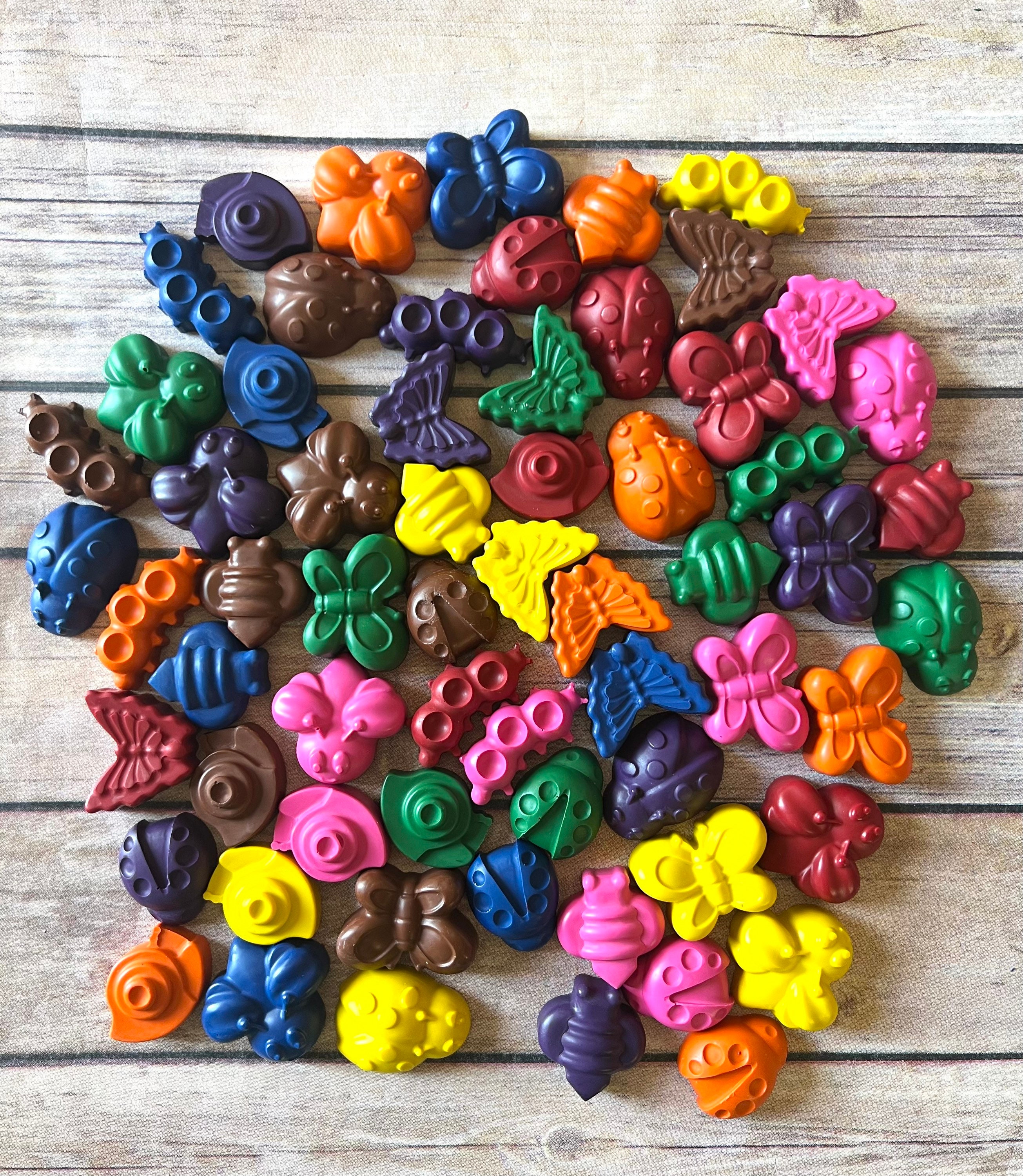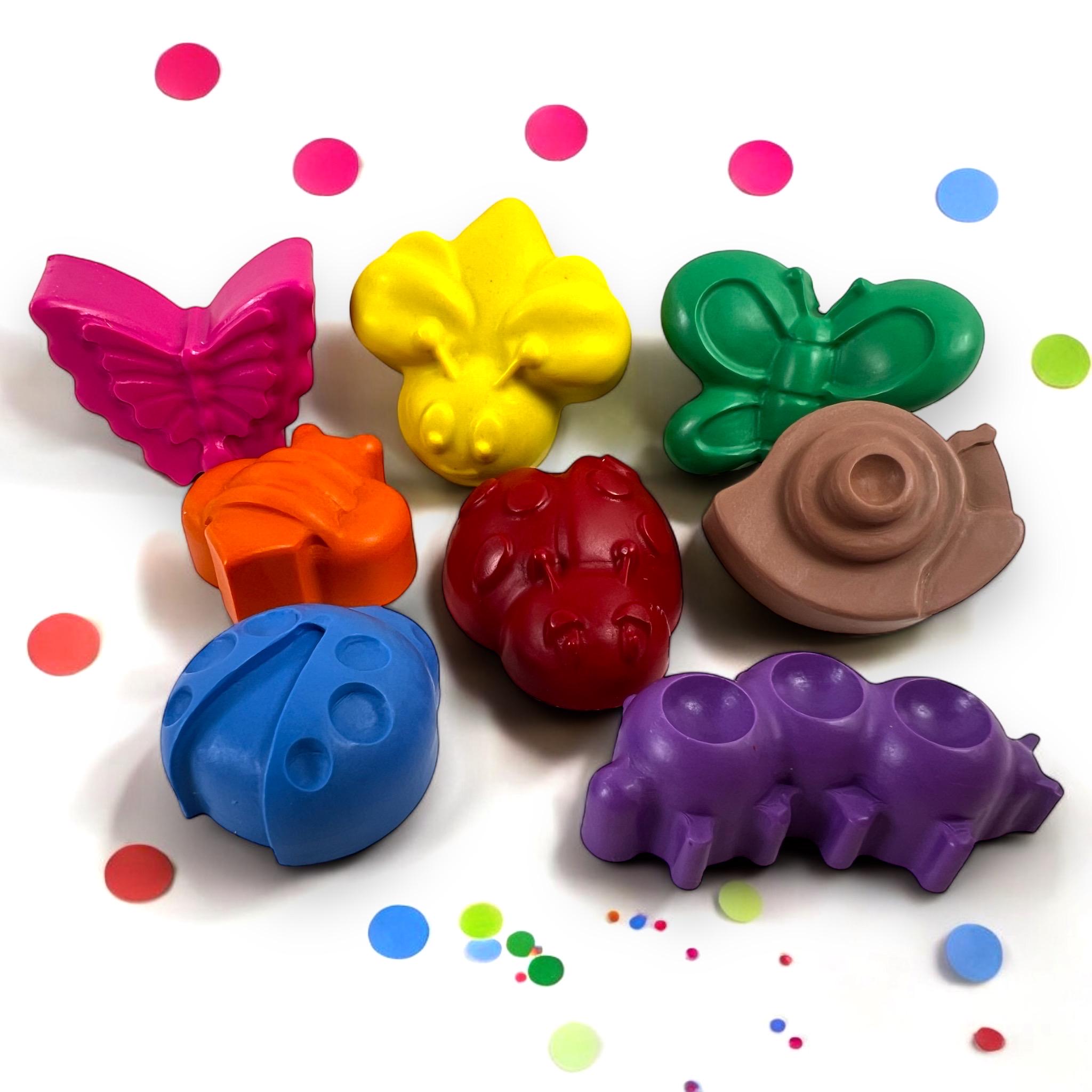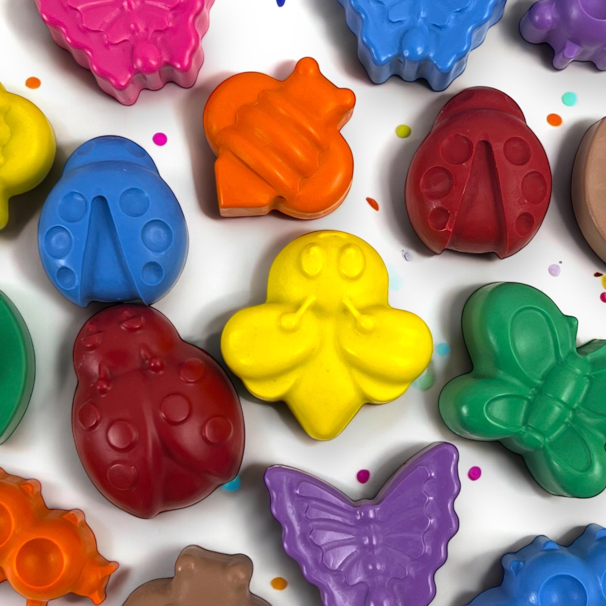 Make your celebrations buzz with excitement with our bug-shaped crayons. These adorable and handmade bug crayons are perfect for bug-themed parties, class favors, or as fun birthday favors. Each crayon is carefully crafted to be colorful and vibrant, sparking the imagination of little artists. Personalize the experience with our custom crayons, making them truly special gifts and party favors. Let the creativity take flight as kids embark on a delightful coloring activity, enjoying the colorful world of bugs. Say thank you in style with these bug-themed favors, sure to be a hit at any kids' party. These bug-shaped crayons are not only fun but also serve as essential kids' art supplies, adding a touch of whimsy to their creations.