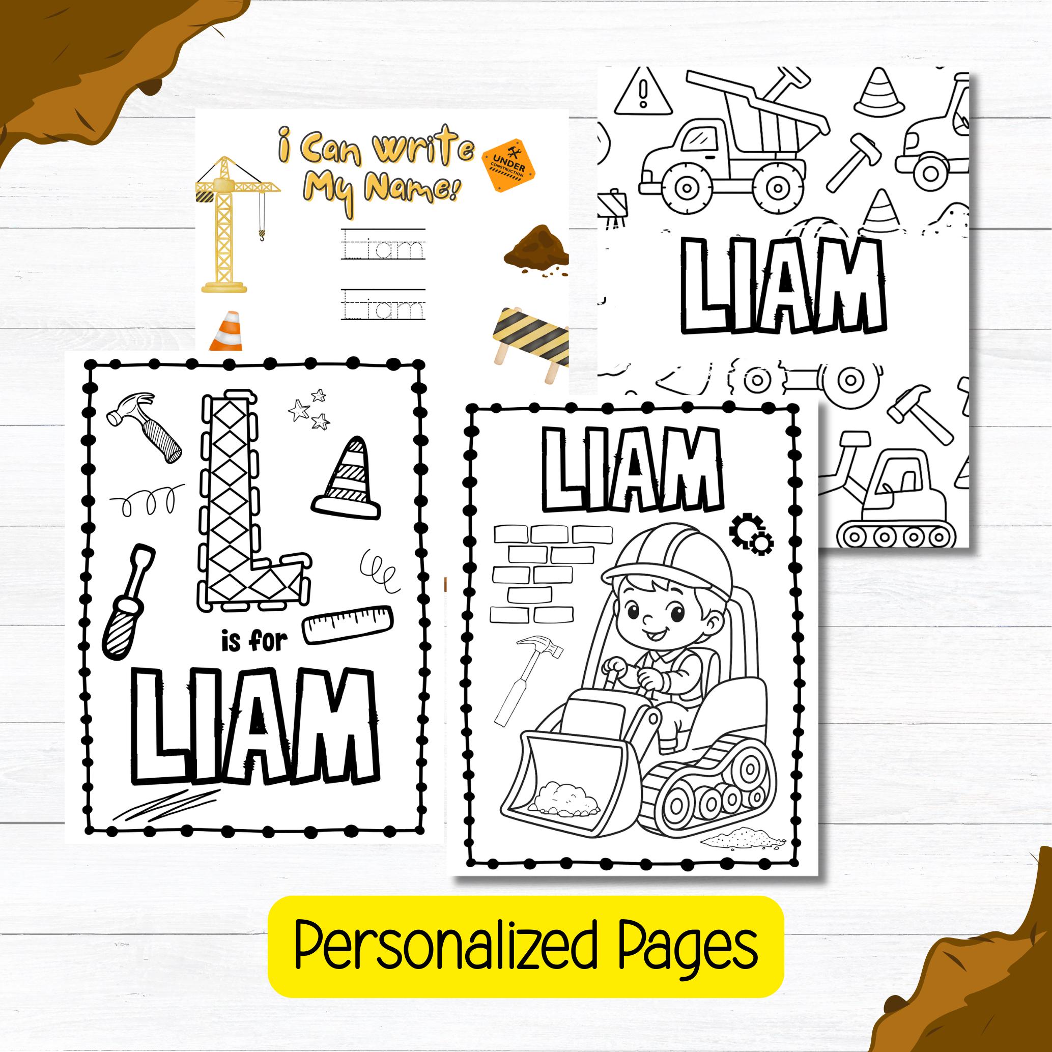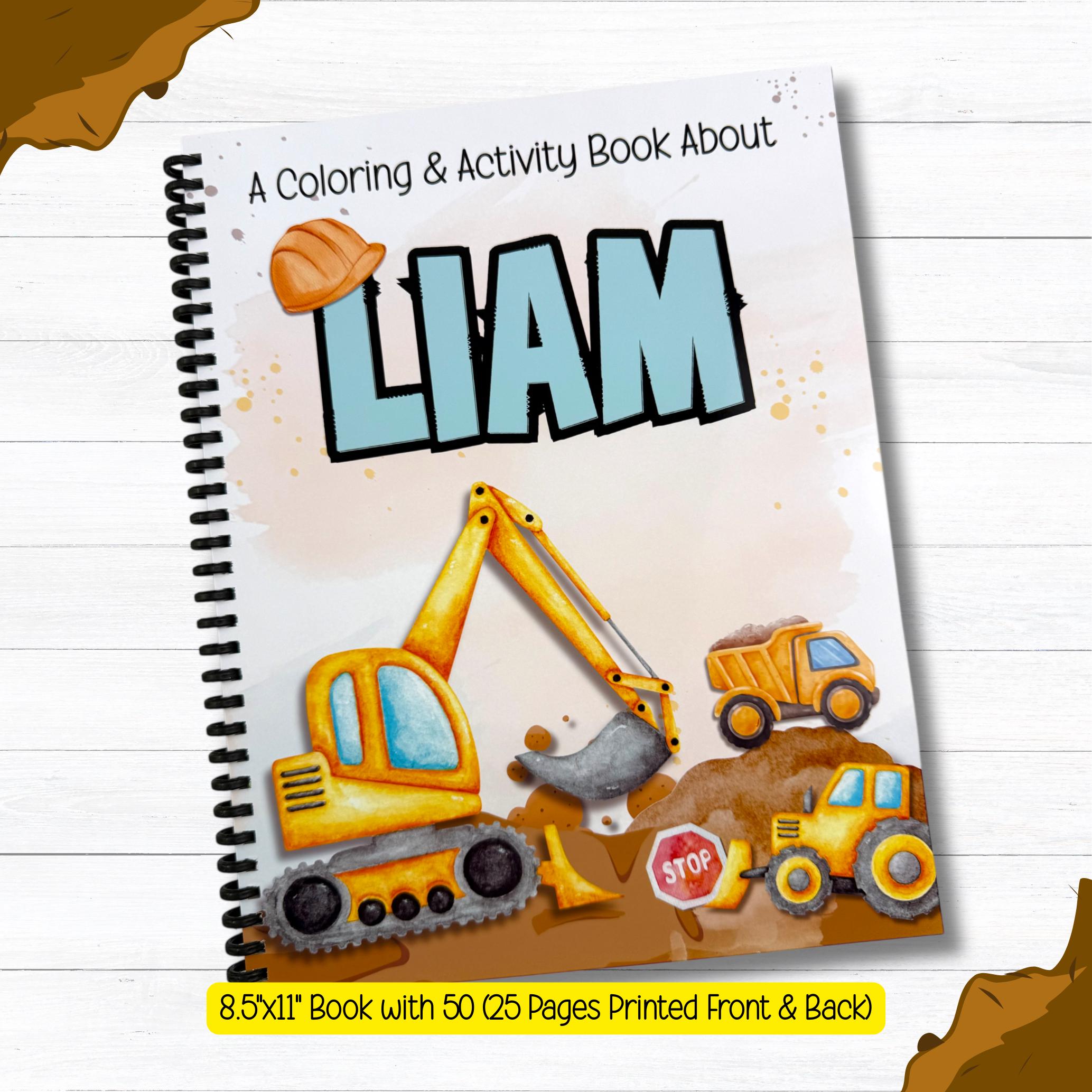 🏗️ Personalized Construction Activity Book with Crayons – Kids Gift