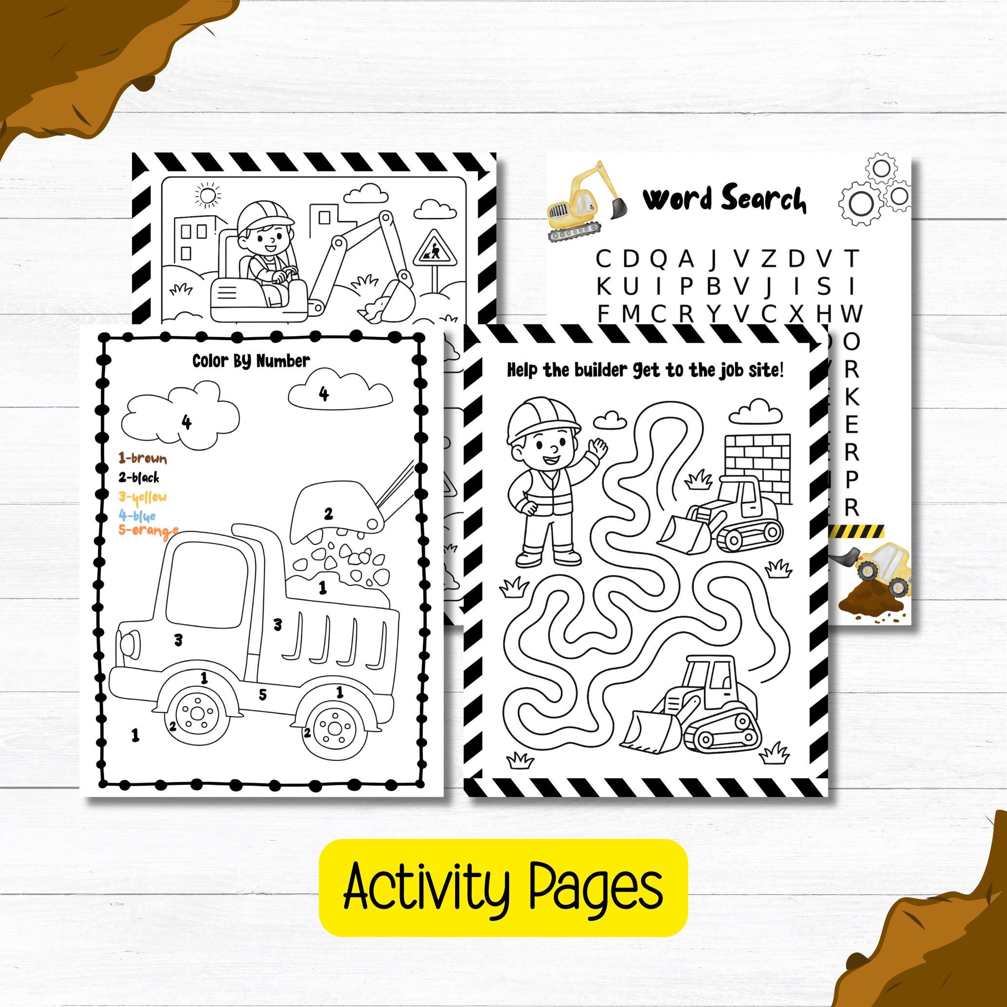 *Features construction trucks, tools, and job site scenes