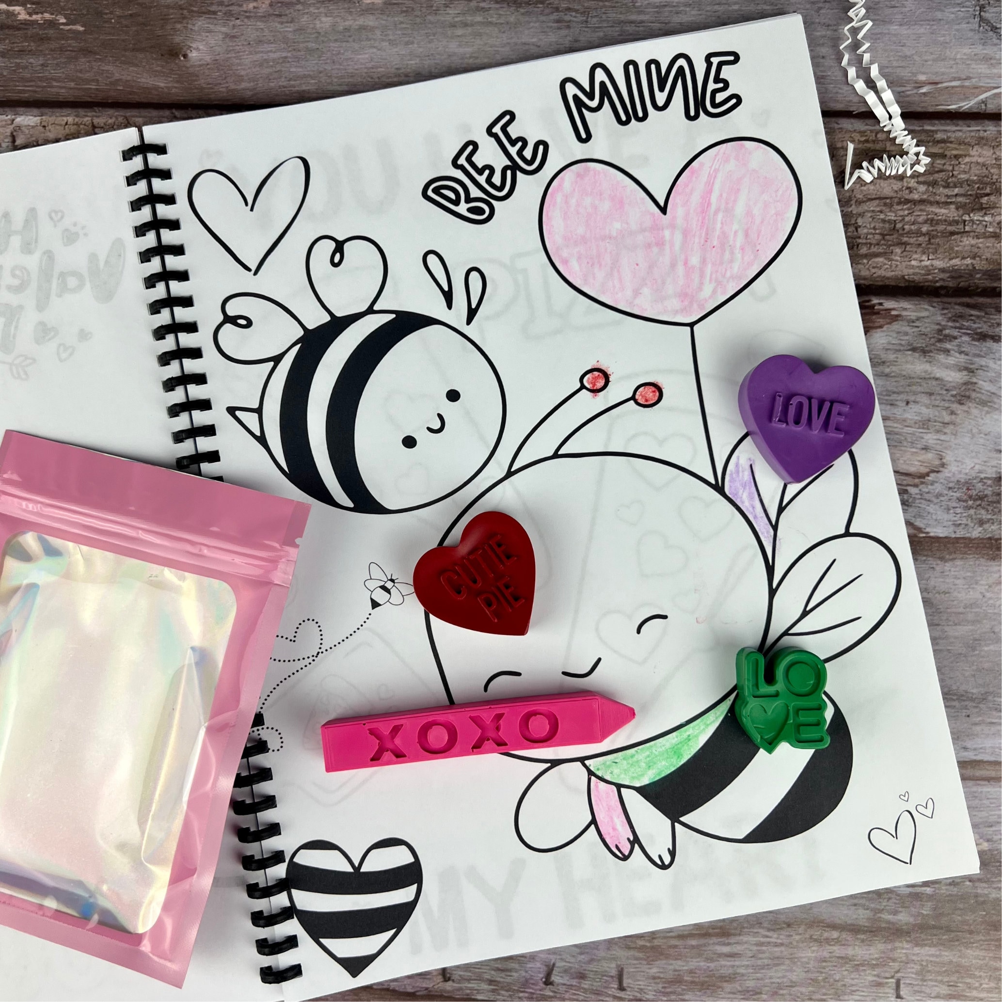 Introducing our delightful Valentine-themed Activity Pad for kids! This personalized coloring book is a perfect blend of fun and creativity, featuring 26 pages of engaging coloring activities that promise hours of entertainment. Each pad includes a set of vibrant crayons, including a special Valentine name crayon with heart accent adding an extra touch of love to your child's artistic adventures.