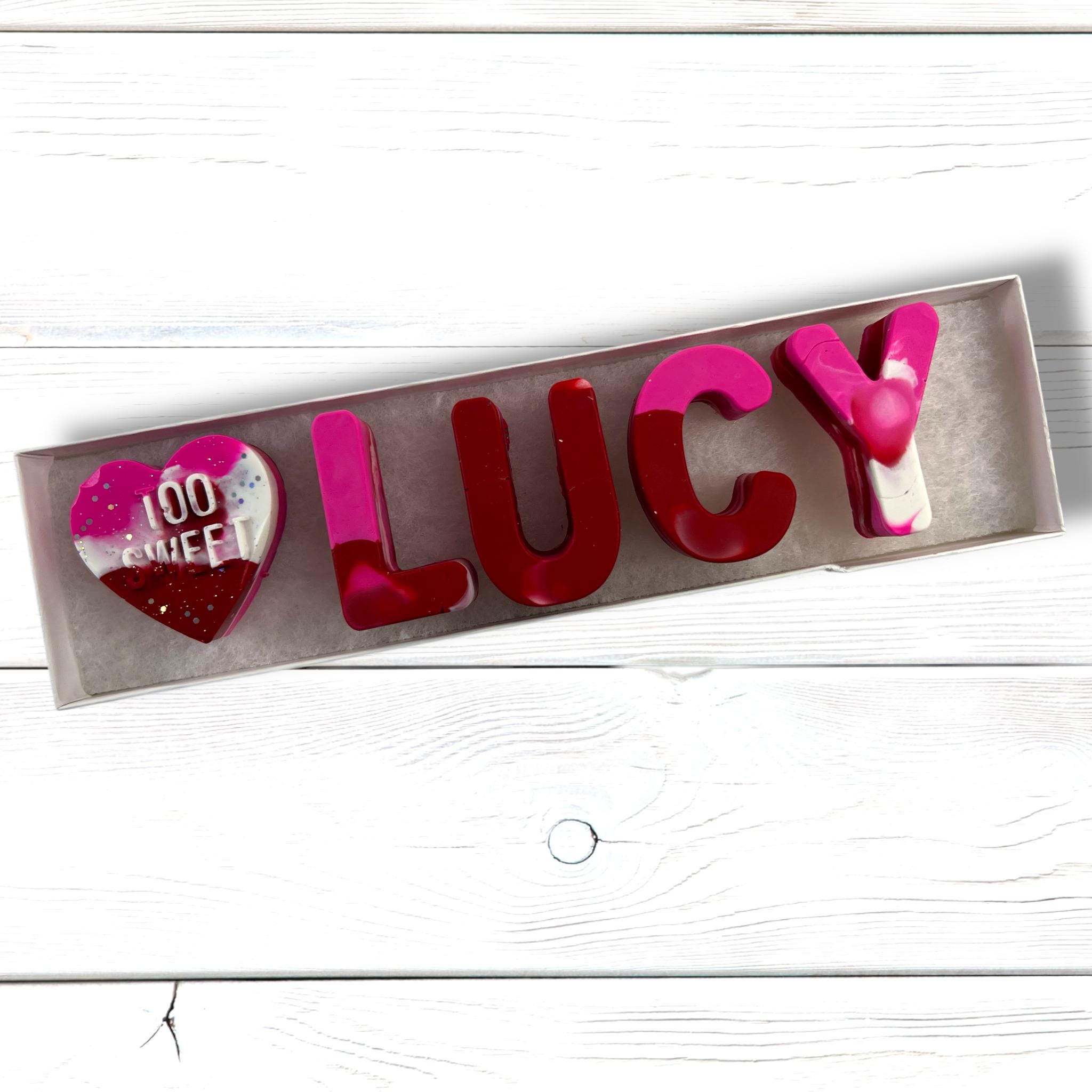Whether you're looking for a thoughtful handmade gift, personalized Easter crayon gifts, or charming stocking stuffers, our glitter-infused name crayons are the answer. They make excellent kids' class favors, fostering letter learning through the personalized touch of your child's name.
