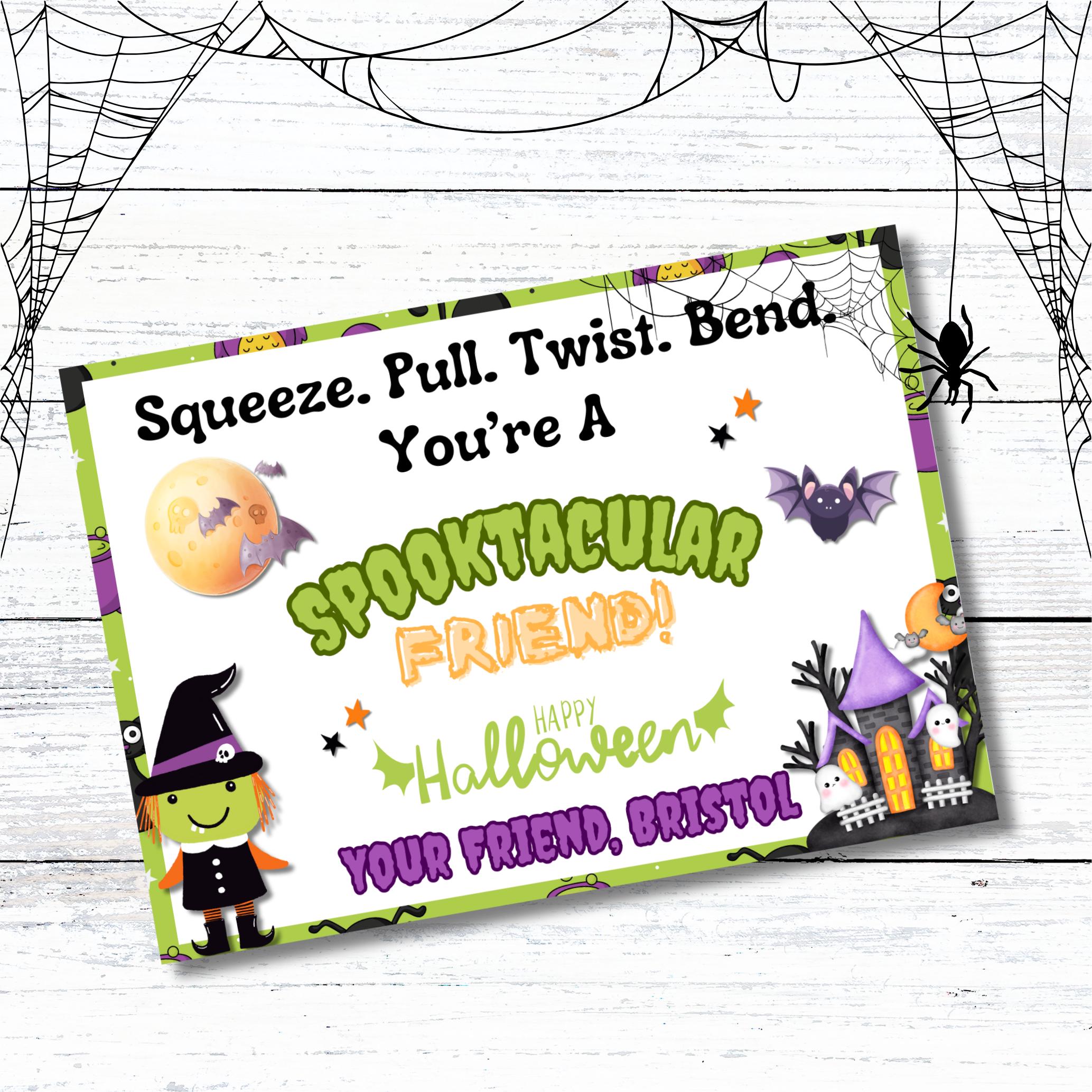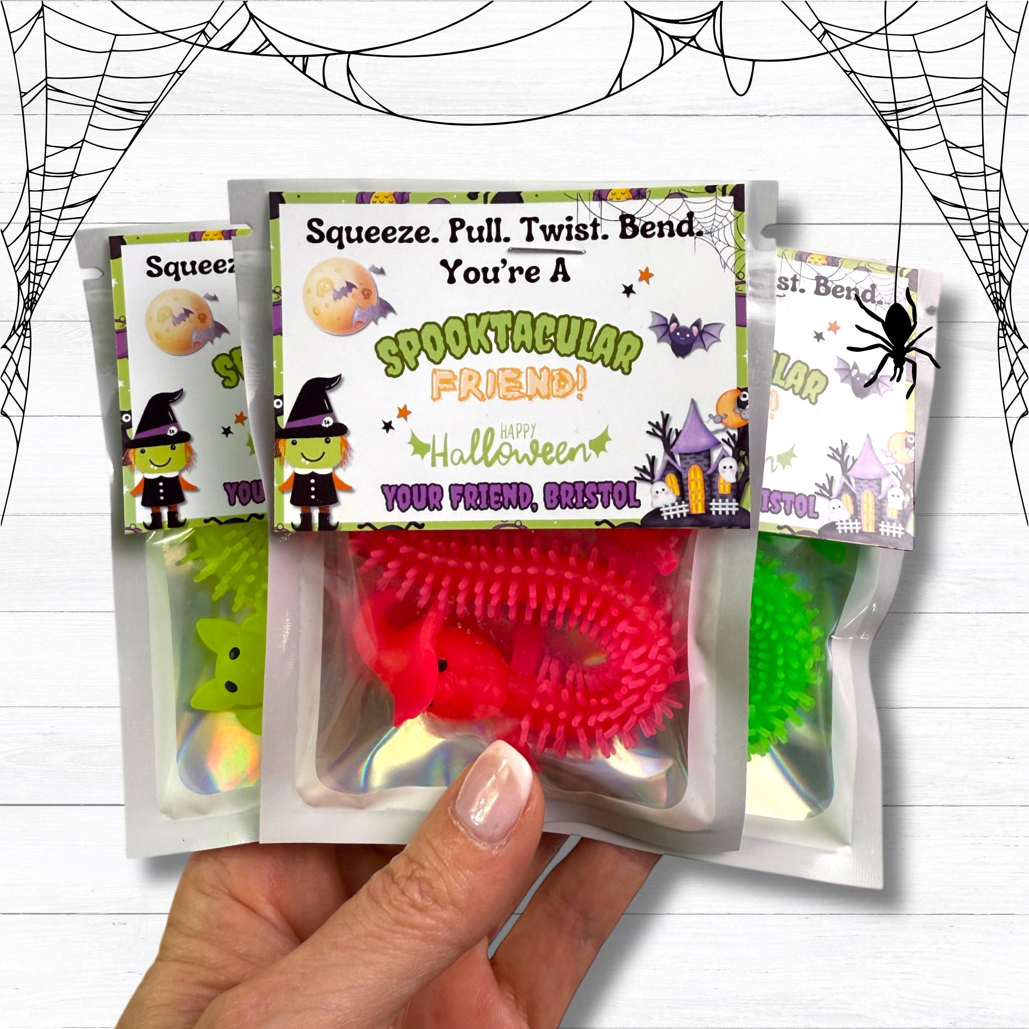 Introducing our delightful Squishy Fidget Halloween Treats - the perfect mix of spooky fun and personalized charm! These squishy stretch delights make fantastic Halloween gifts and personalized treats for all ages. Whether you're looking for Halloween favors for the classroom or school treats to impress, our Squishy Stretch Halloween Treats are sure to spread smiles. Surprise your little ghouls and goblins with these adorable squishies, ideal for filling goodie bags, decorating Halloween cards, or as unforgettable trick-or-treat favors. Teachers, make your students' day with these playful and spooky squishy favors, doubling up as memorable teacher gifts. Get ready for a happy Halloween with our Spooky Squishy Favors - the ultimate addition to any Halloween celebration!