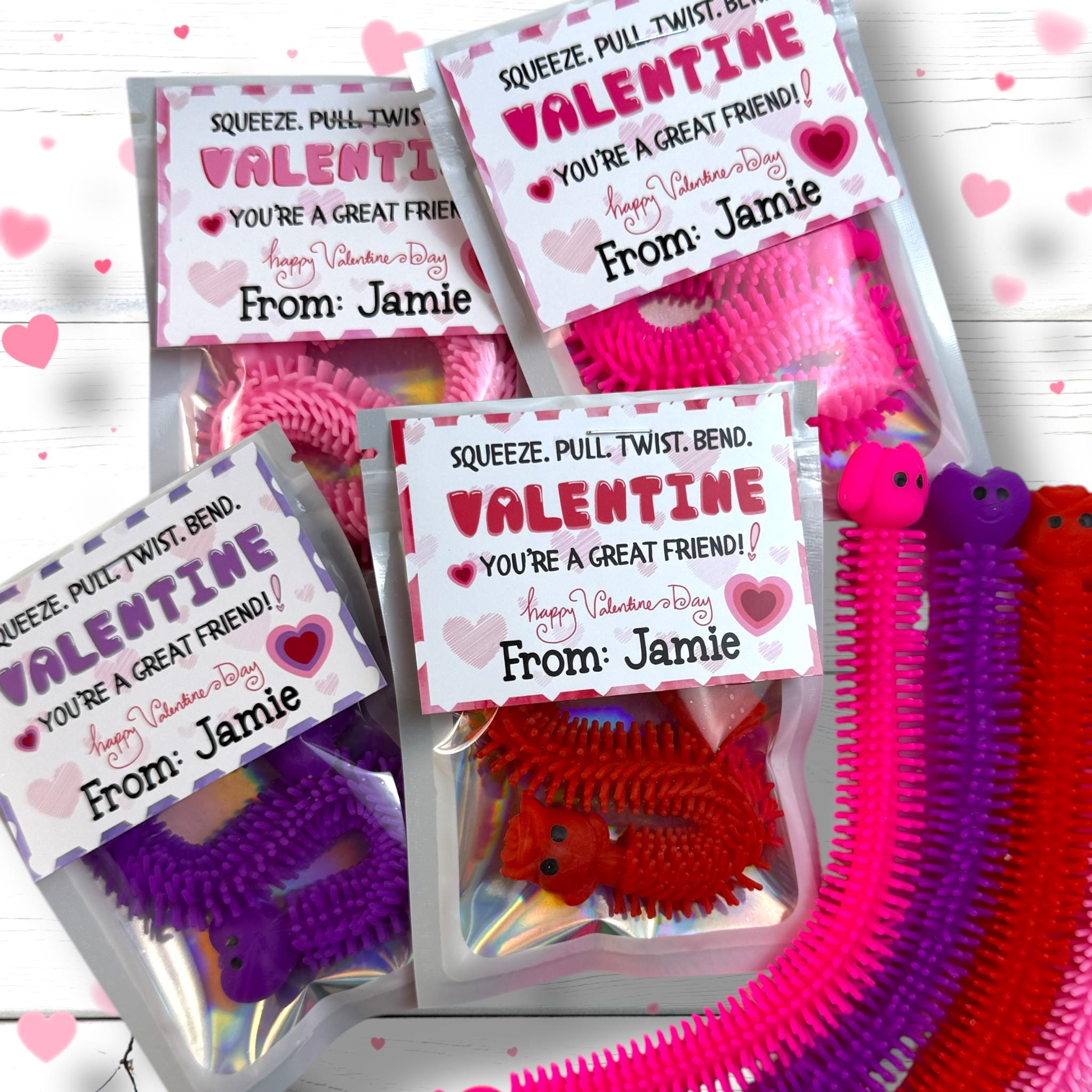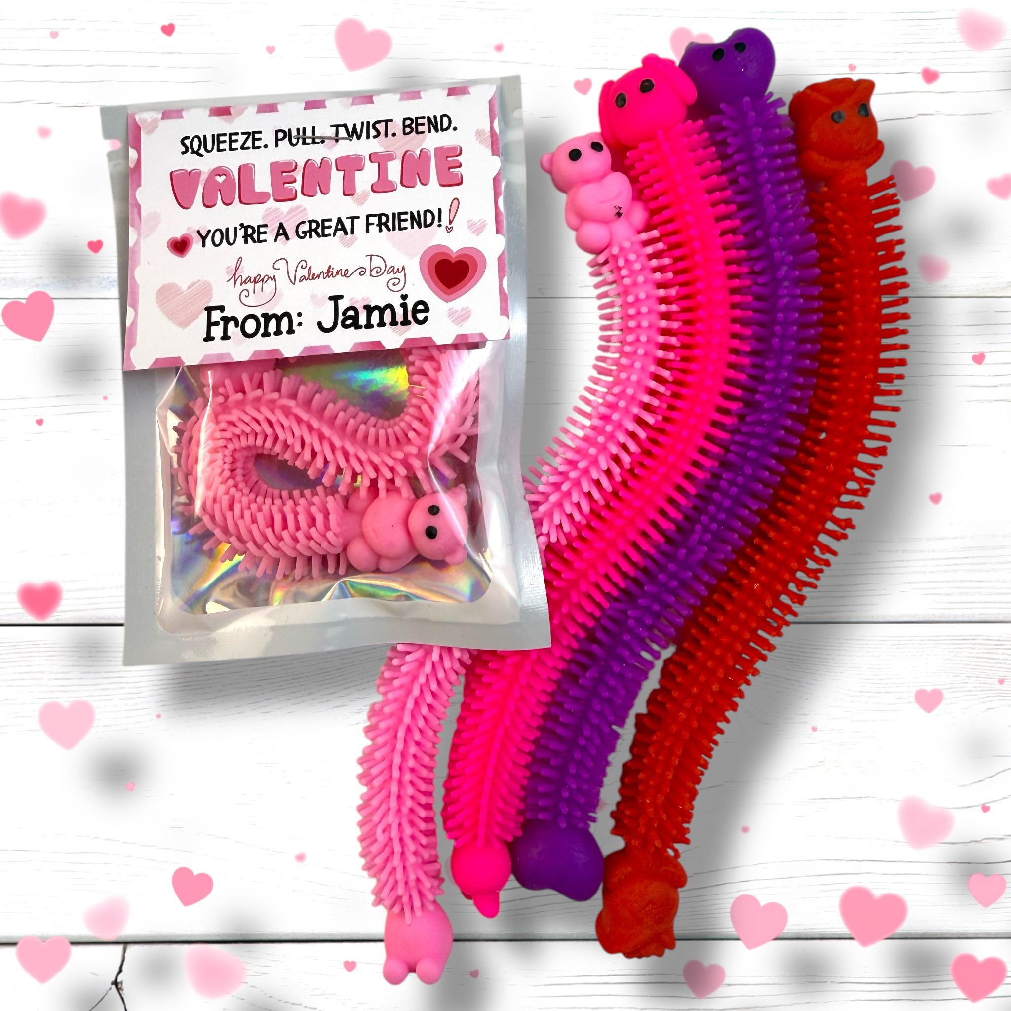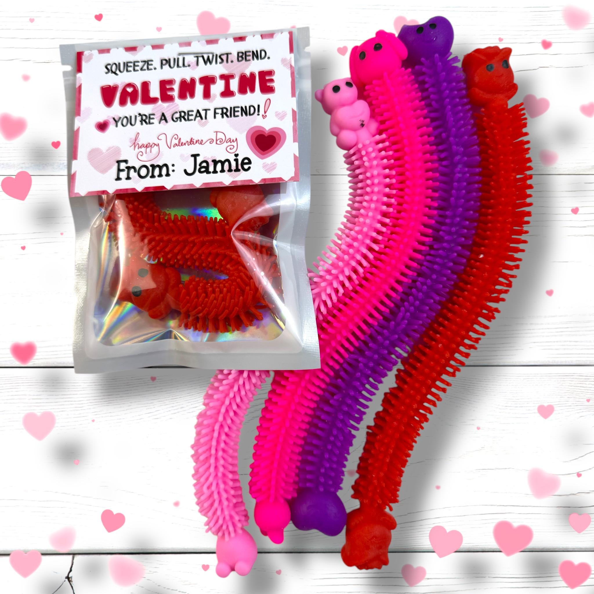 Introducing our delightful Squishy Fidget Valentine Treats – the perfect blend of love and personalized charm! These squishy stretch delights make fantastic Valentine's Day gifts and personalized treats for all ages. Whether you're looking for Valentine favors for the classroom or school treats to impress, our Squishy Stretch Valentine Treats are sure to spread smiles. Surprise your little sweethearts with these adorable squishies, ideal for filling goodie bags, decorating Valentine cards, or as unforgettable party favors. Teachers, make your students' day with these playful and lovely squishy favors, doubling up as memorable teacher gifts. Get ready for a happy Valentine's Day with our Sweet Squishy Favors – the ultimate addition to any Valentine's celebration!