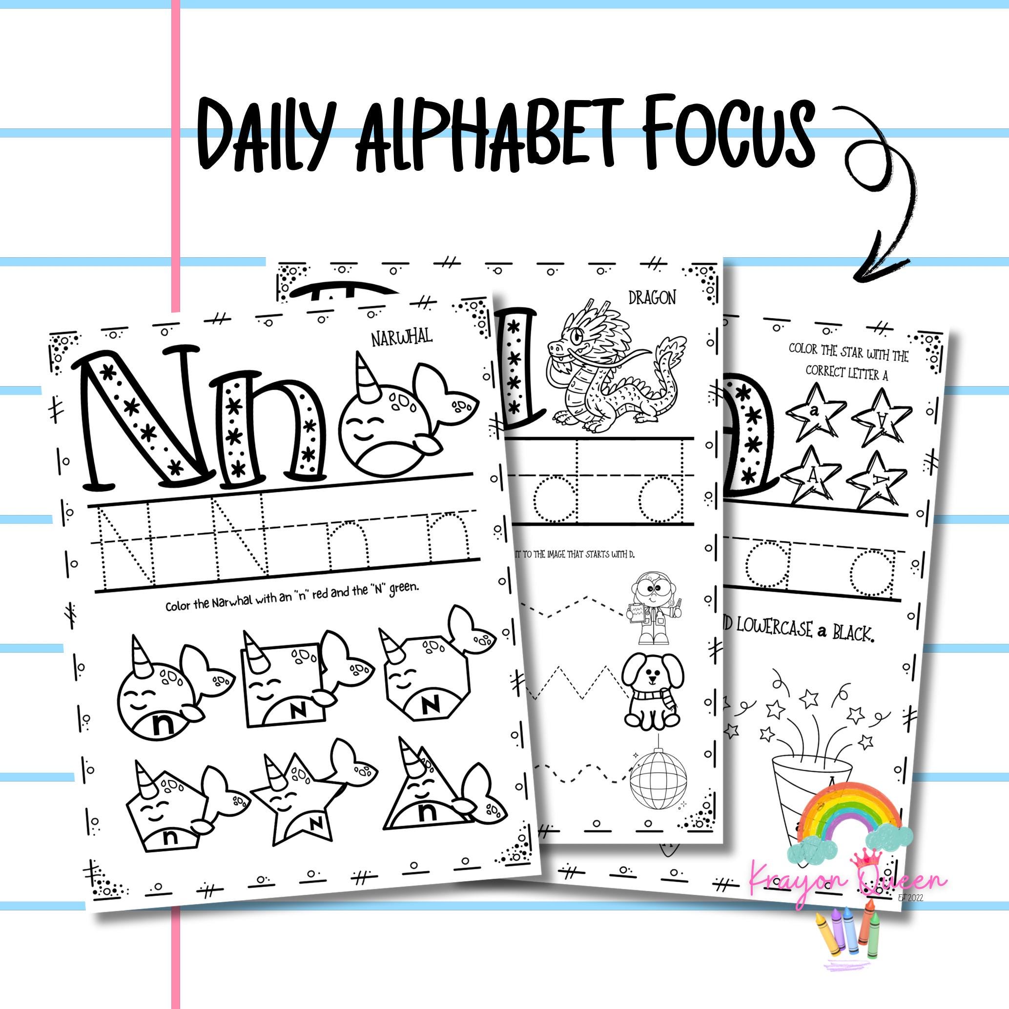 Alphabet Focus: Dive into one letter each day, enhancing letter recognition and familiarity through playful, targeted activities.