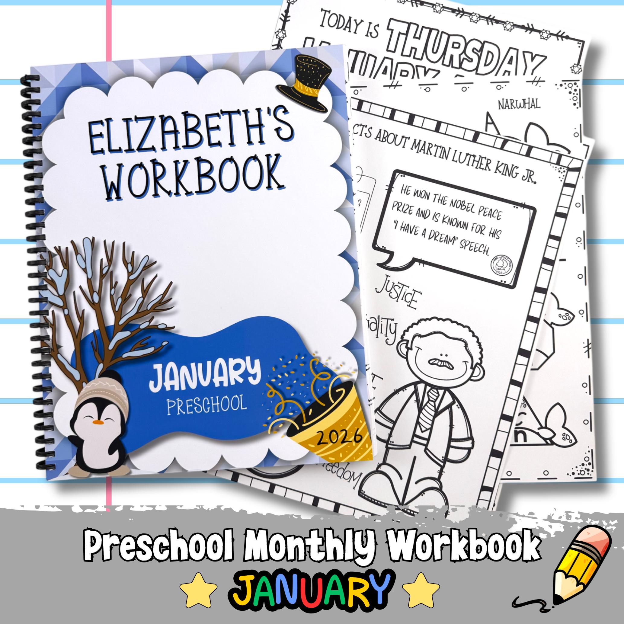 Make learning exciting with our customized preschool workbook, perfect for toddlers and preschoolers! Designed as a January-themed daily workbook, it introduces concepts like the five senses, celebrates figures like Martin Luther King Jr., and supports early learning milestones. Ideal for homeschooling or as an educational gift, this personalized workbook is packed with fun activities to inspire curiosity and growth. Encourage your little one's love for learning with a unique monthly workbook tailored just for them!
