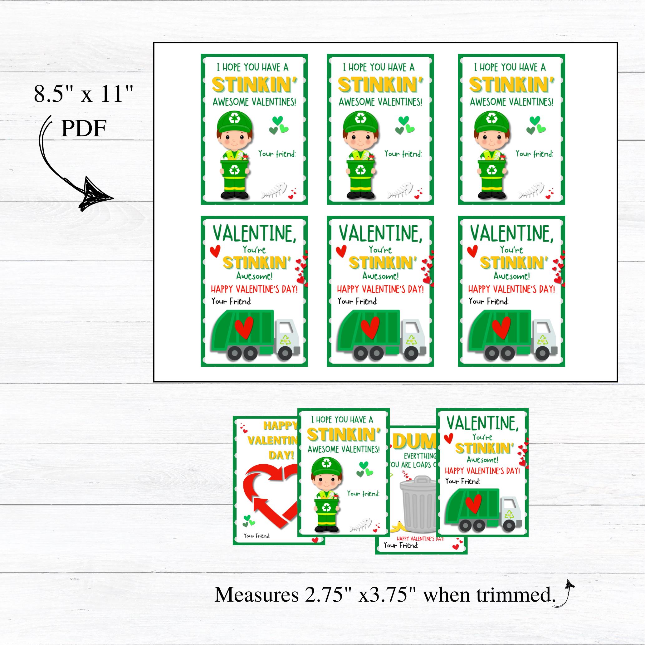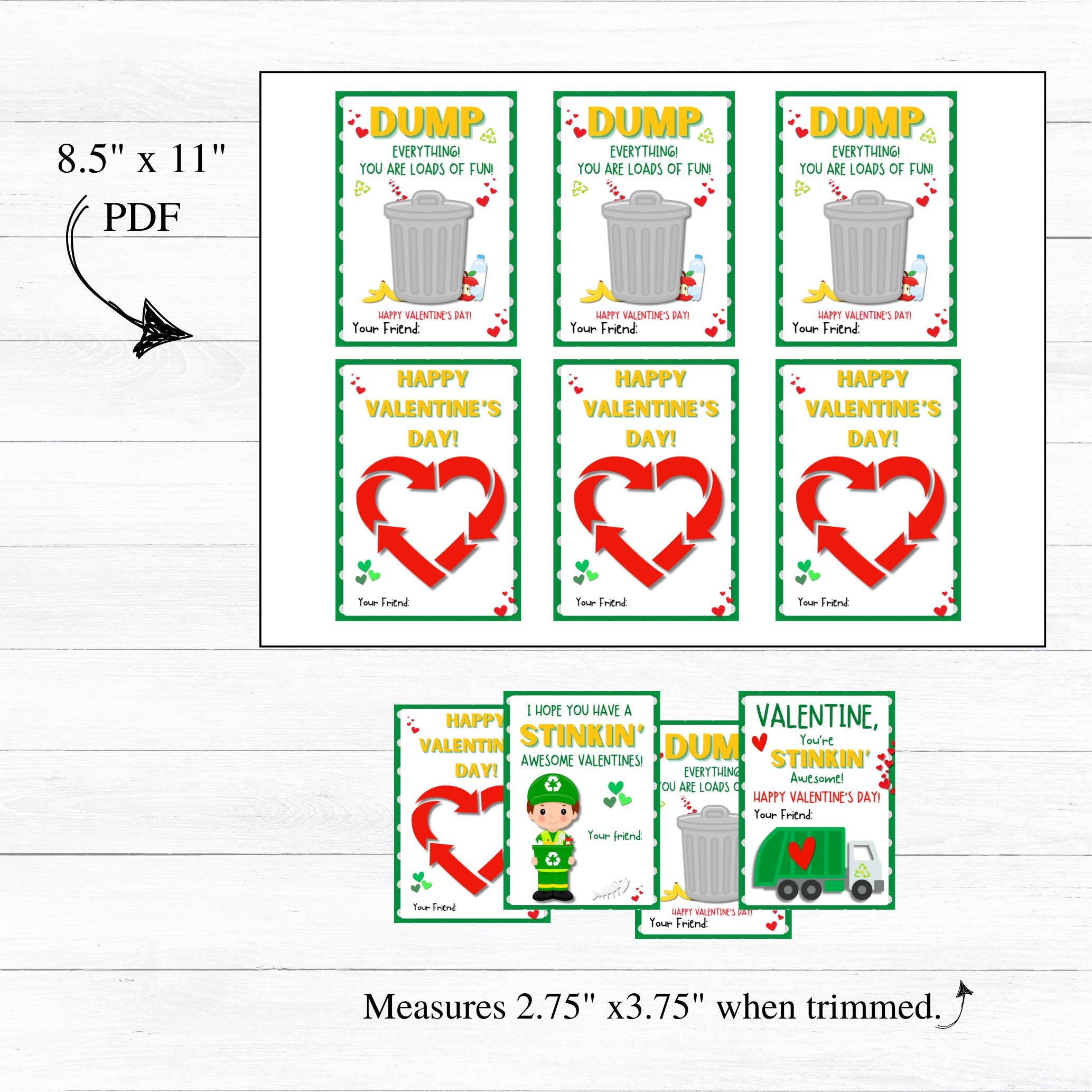 This listing is for an instant download, print-ready set of 4 garbage themed Valentine's Day cards. The following files will be included with your purchase: