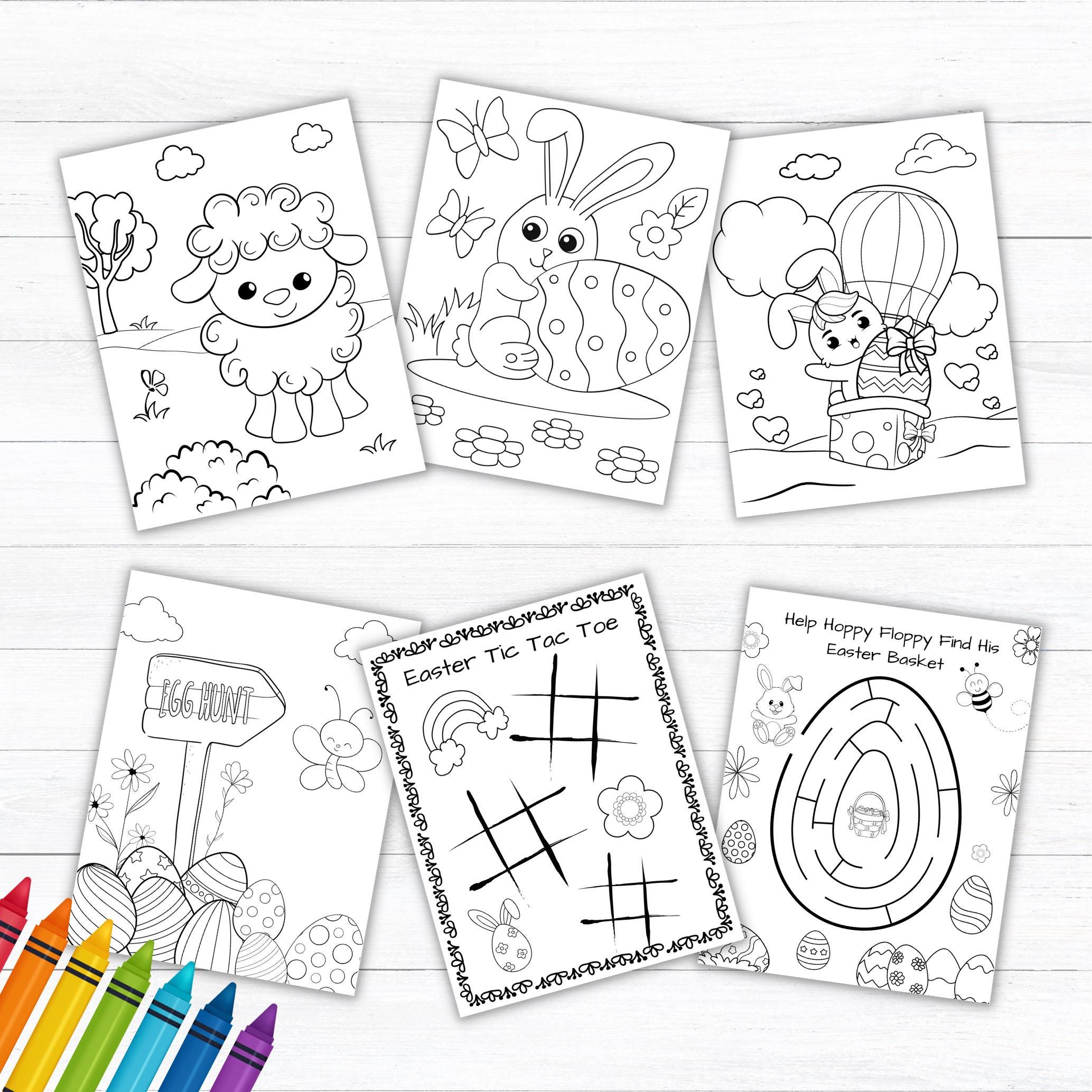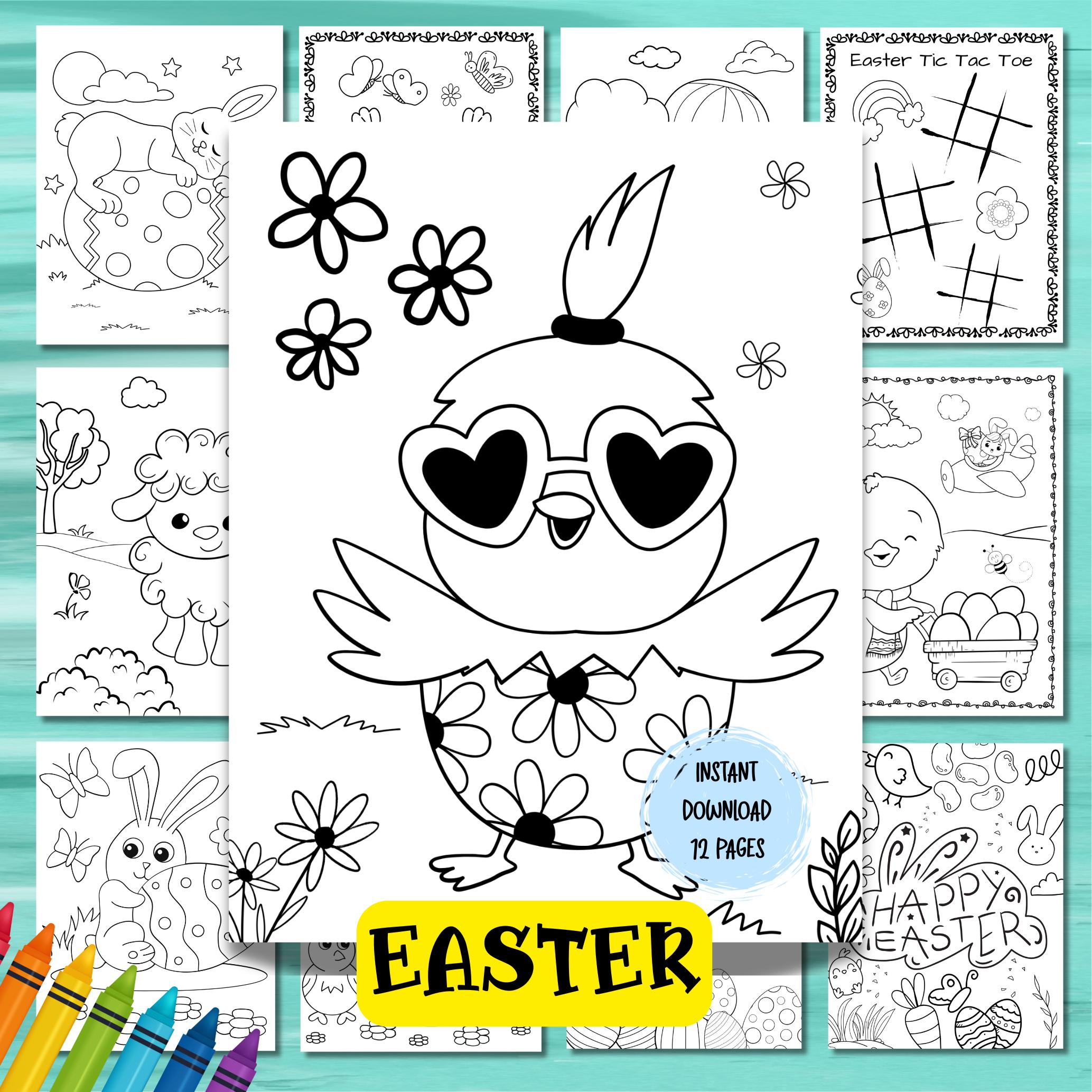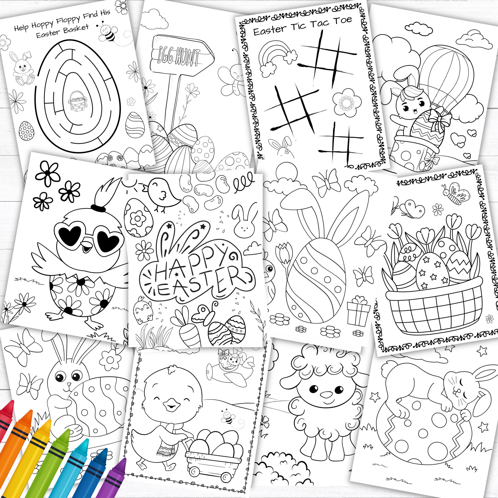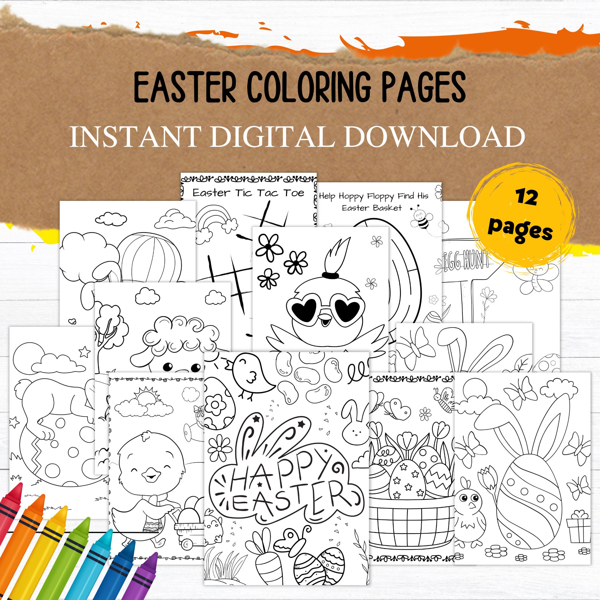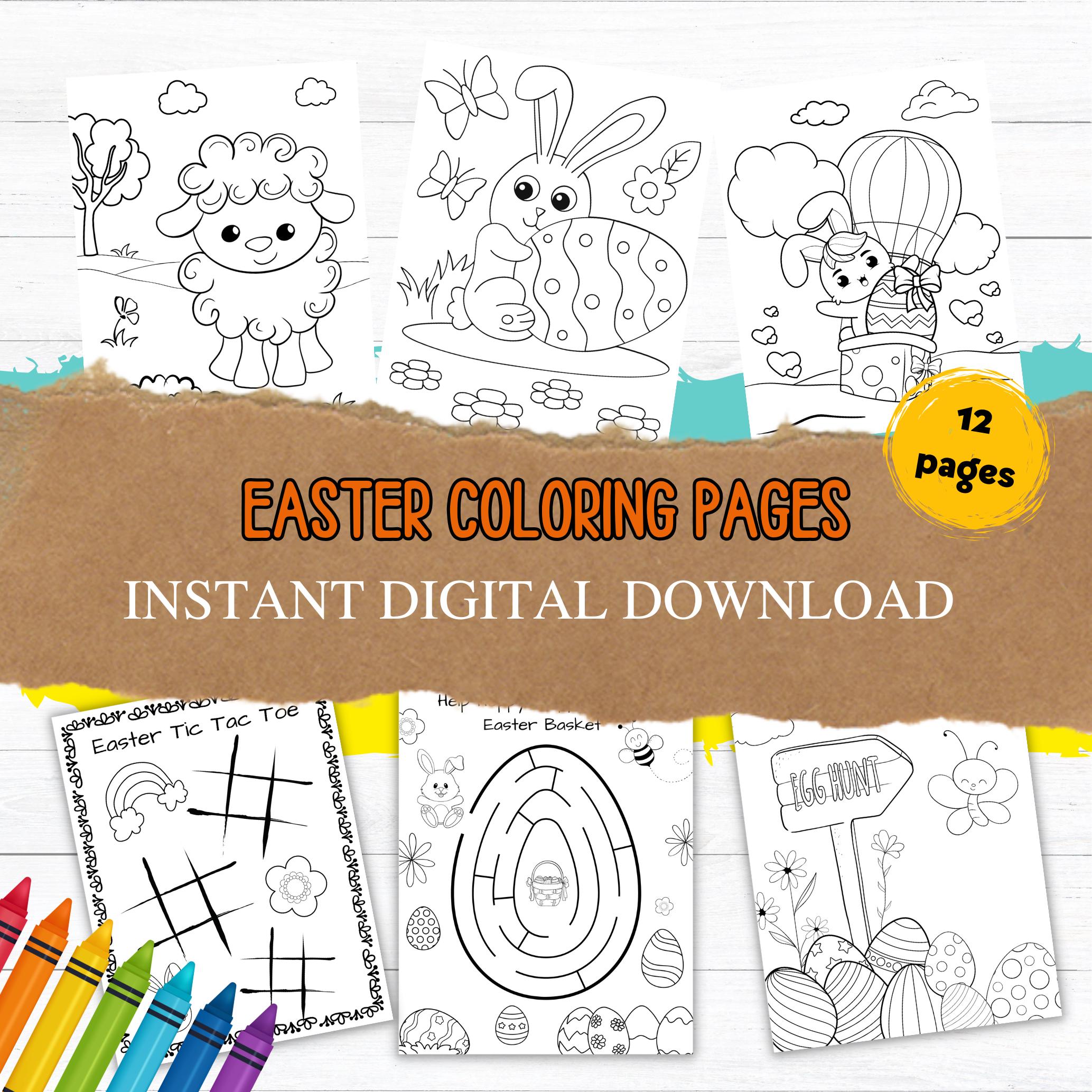 This listing is for an instant download, print-ready set of 12 Easter themed coloring and activity pages . The following files will be included with your purchase: