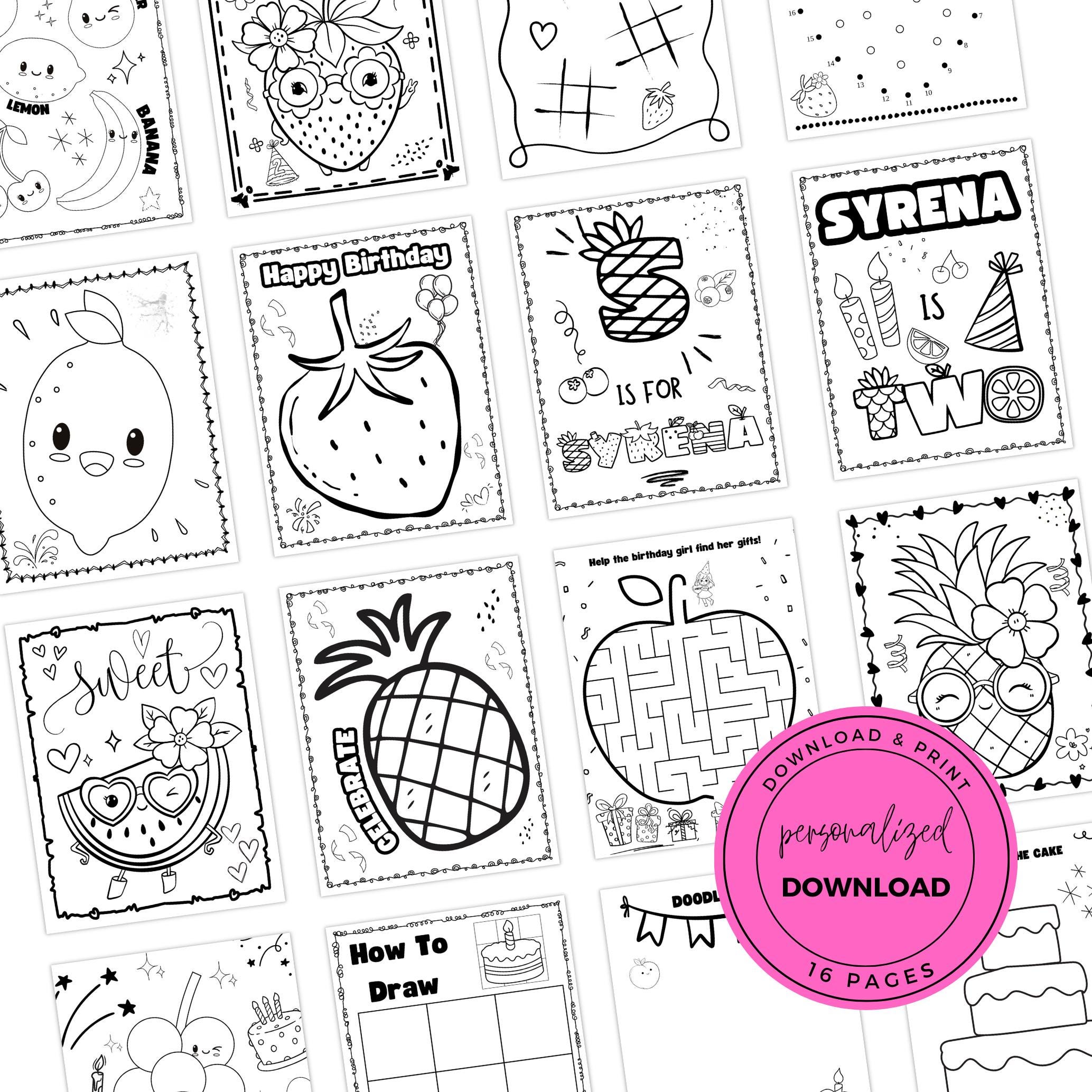Make your little one’s 2nd birthday extra special with our Personalized Fruit-Themed Coloring Pages! These custom coloring pages are perfect for a Twotti Fruitti favor, featuring fun and vibrant fruit activity pages that keep kids entertained. Ideal for summer-themed parties, these digital fruit color sheets make great fruit theme gifts and summer activities for little artists. Perfect for kids' coloring pages at a summer party, these fruit coloring pages add a creative touch to your celebration! 🍉🍊🎨