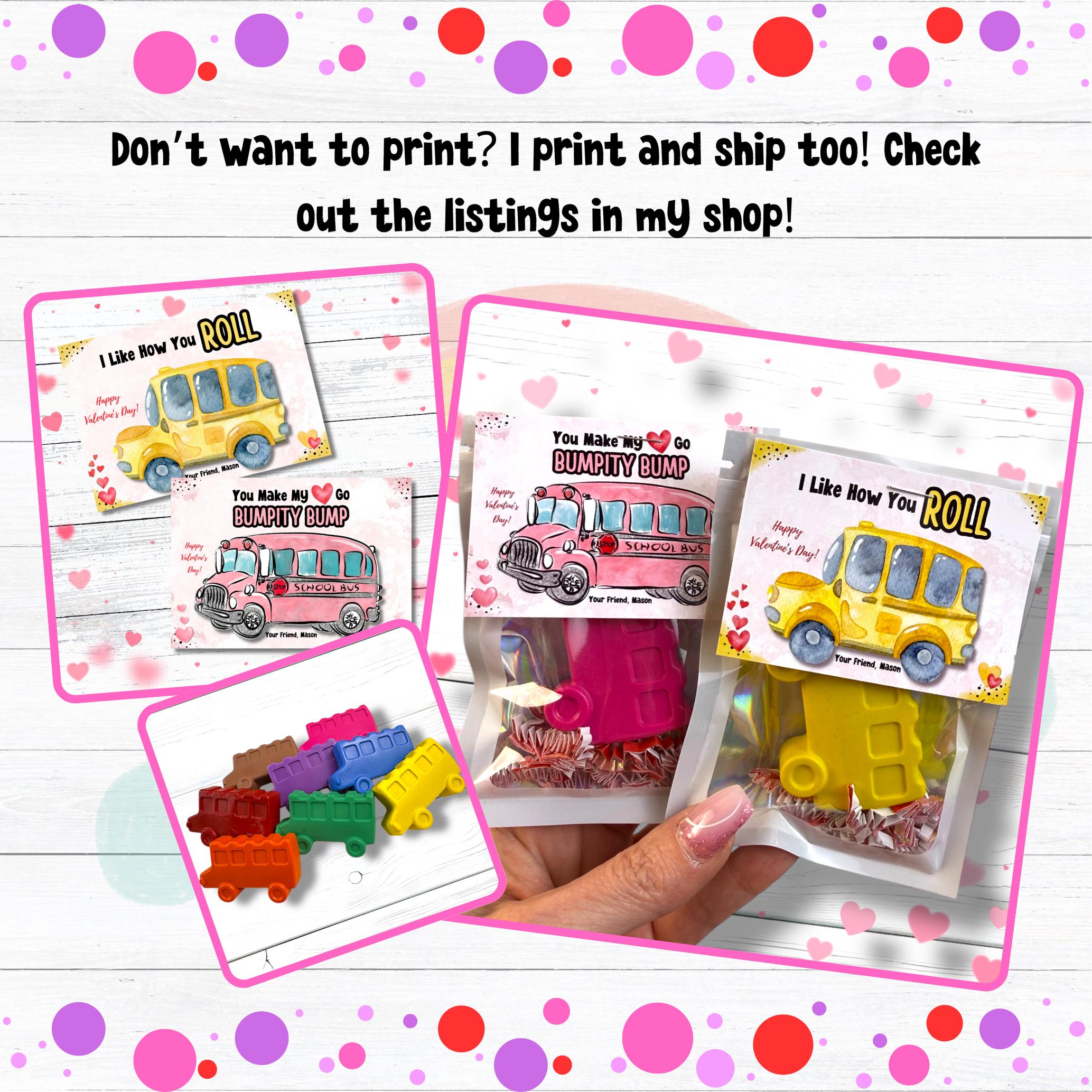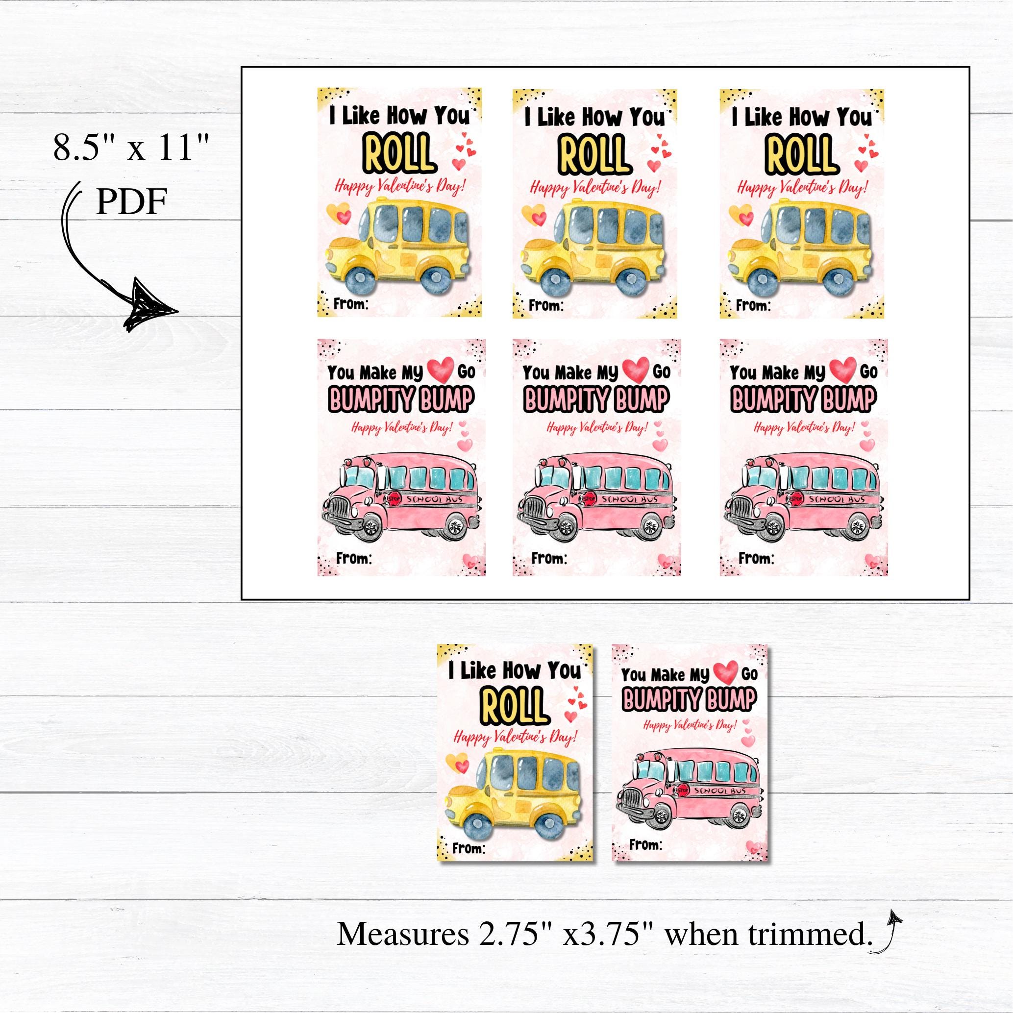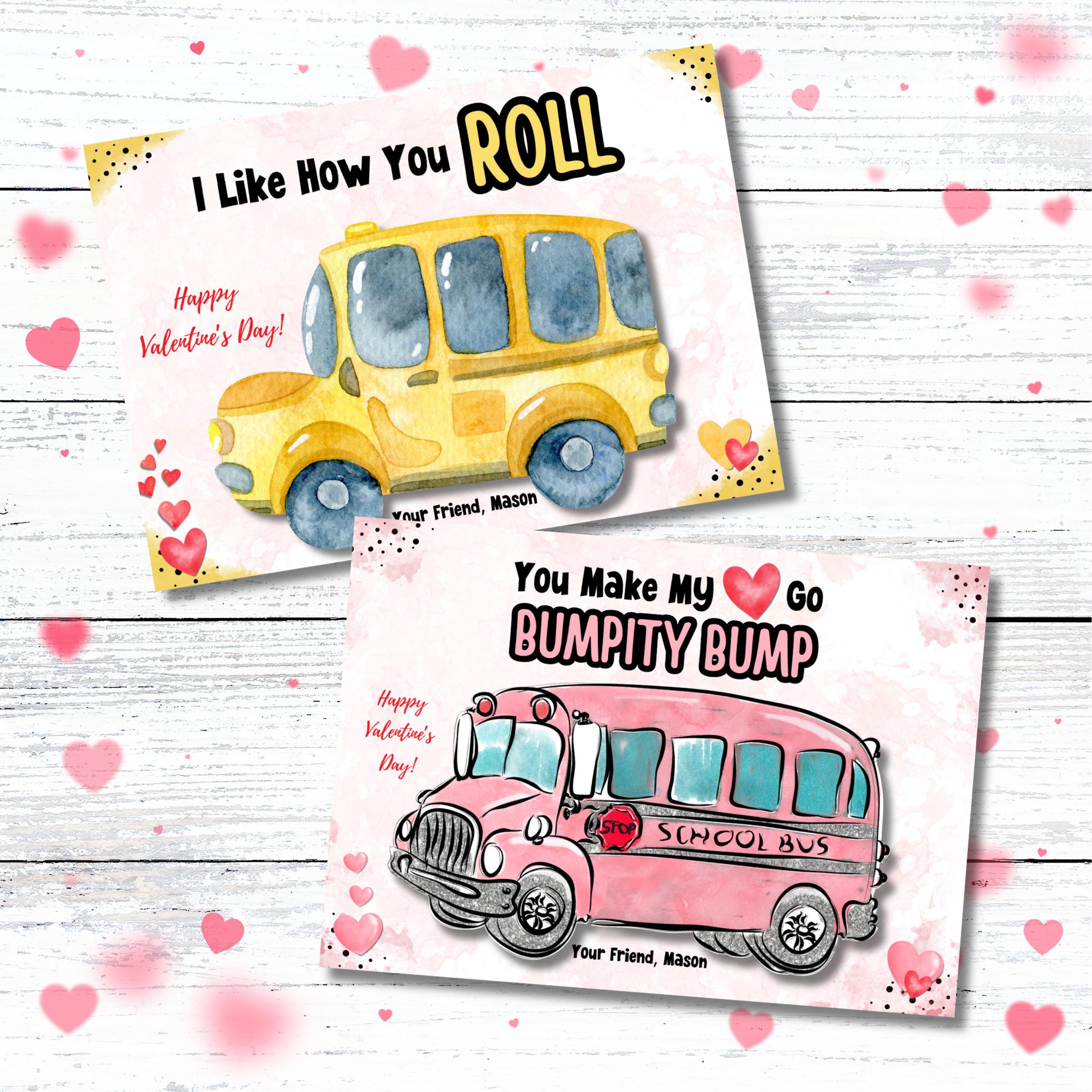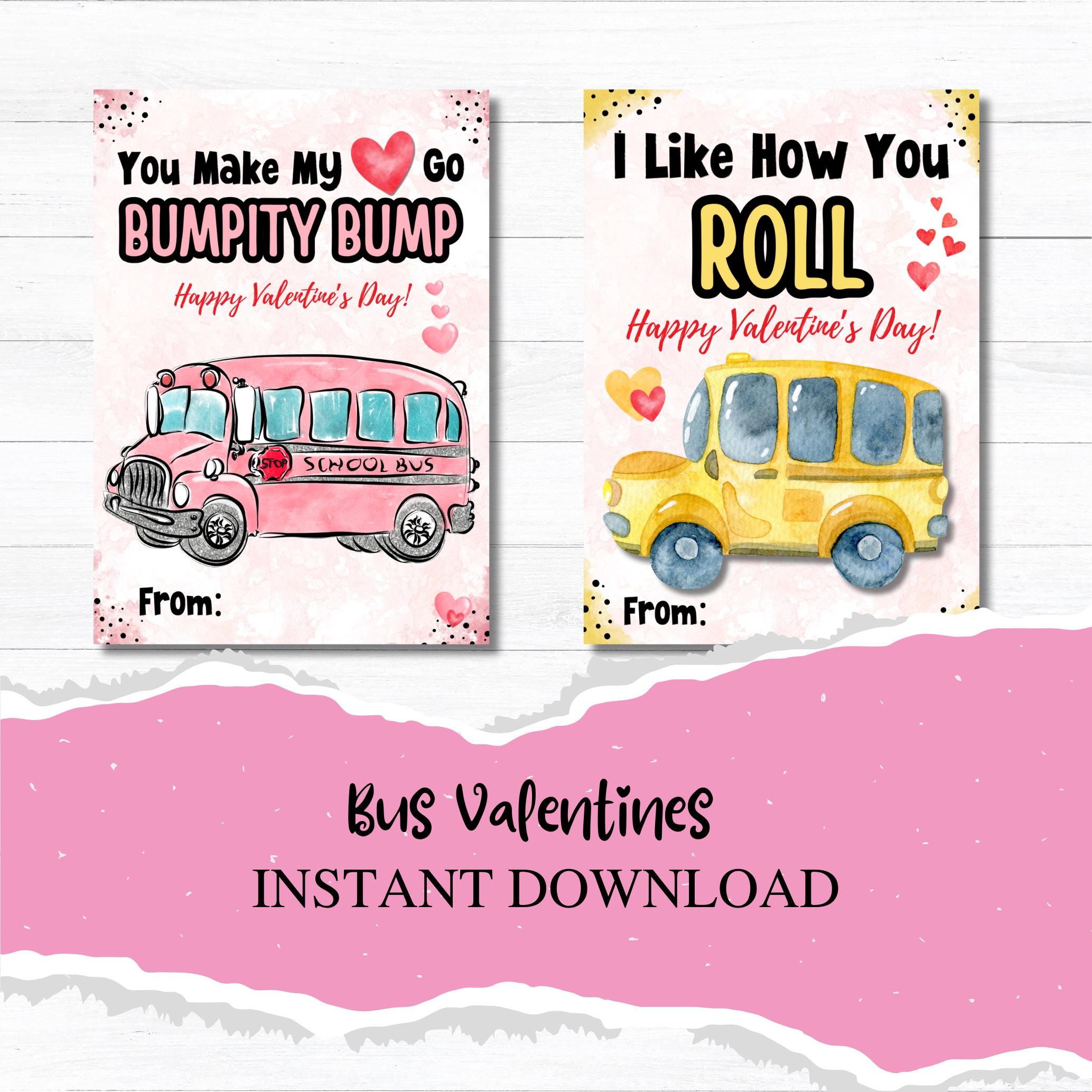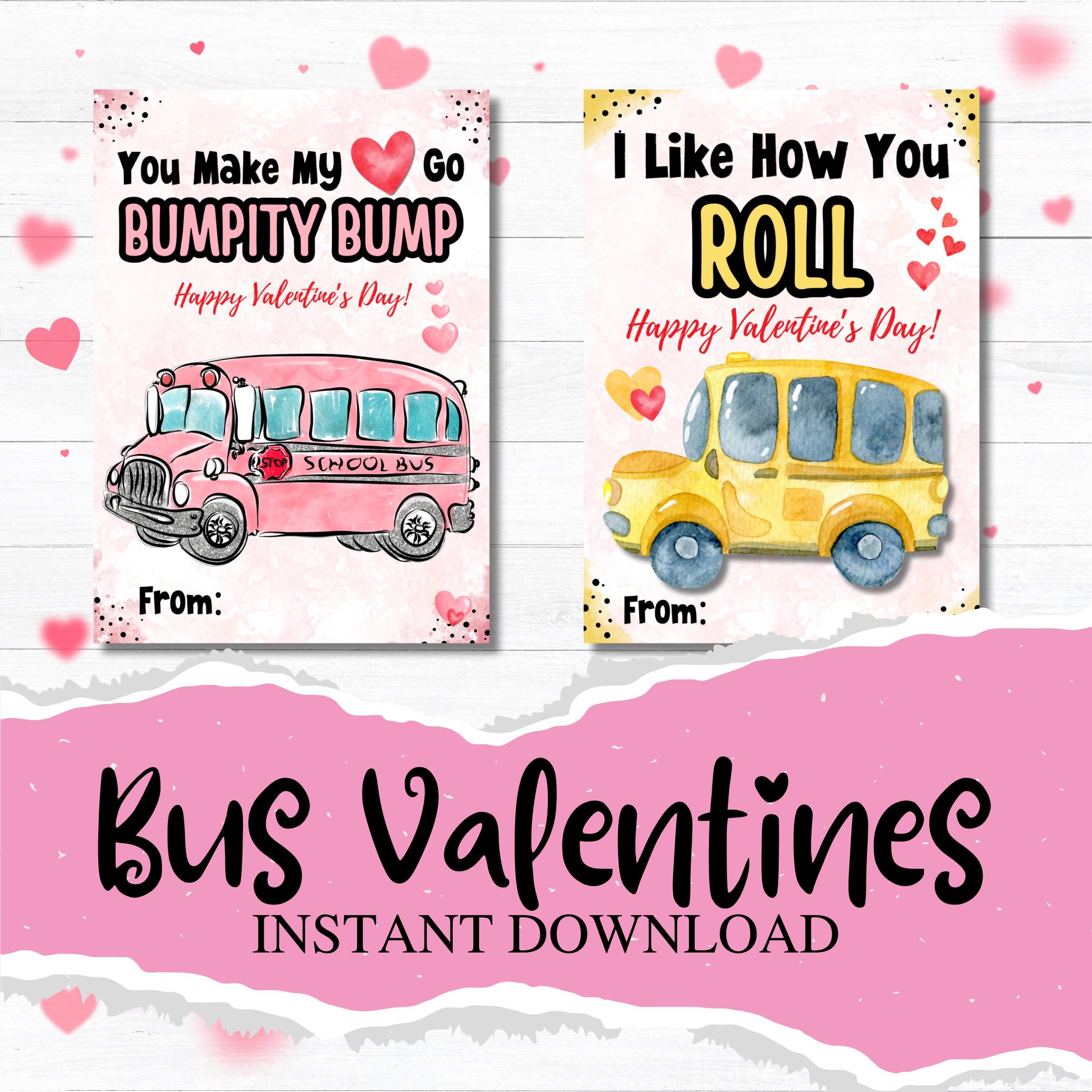 This listing is for an instant download, print-ready set of 2 bus themed Valentine's Day cards. The following files will be included with your purchase: