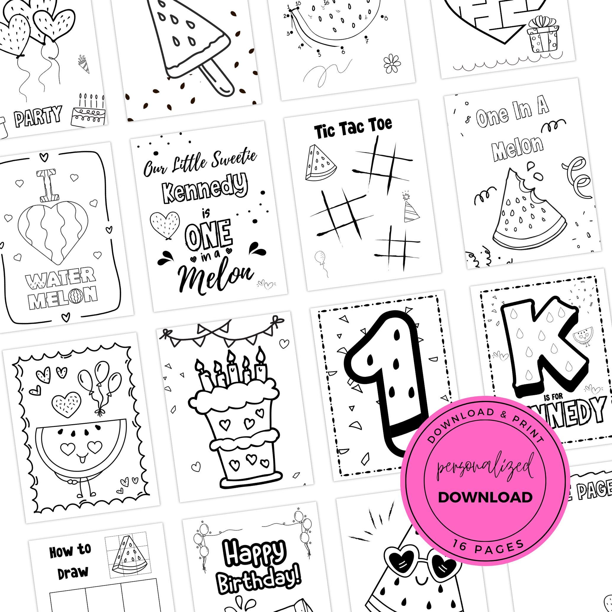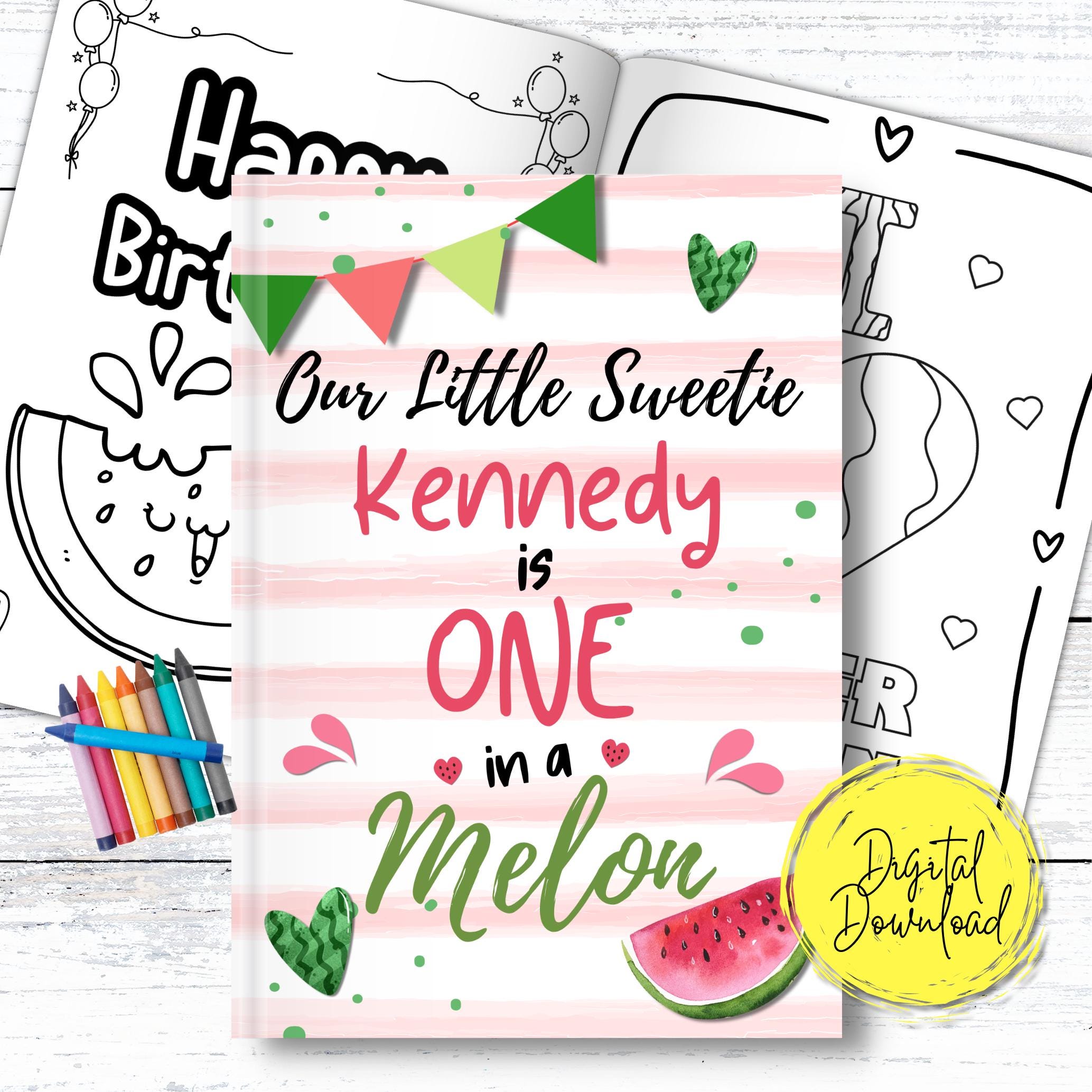 Make your One in a Melon Party extra special with this watermelon-themed printable coloring book! Perfect for a 1st birthday, this kids coloring book features fun watermelon coloring pages, making it a great birthday coloring activity. Instantly download this printable book as a custom coloring page set for a summer-themed party or as party favor goodies for little guests. 🎉🍉