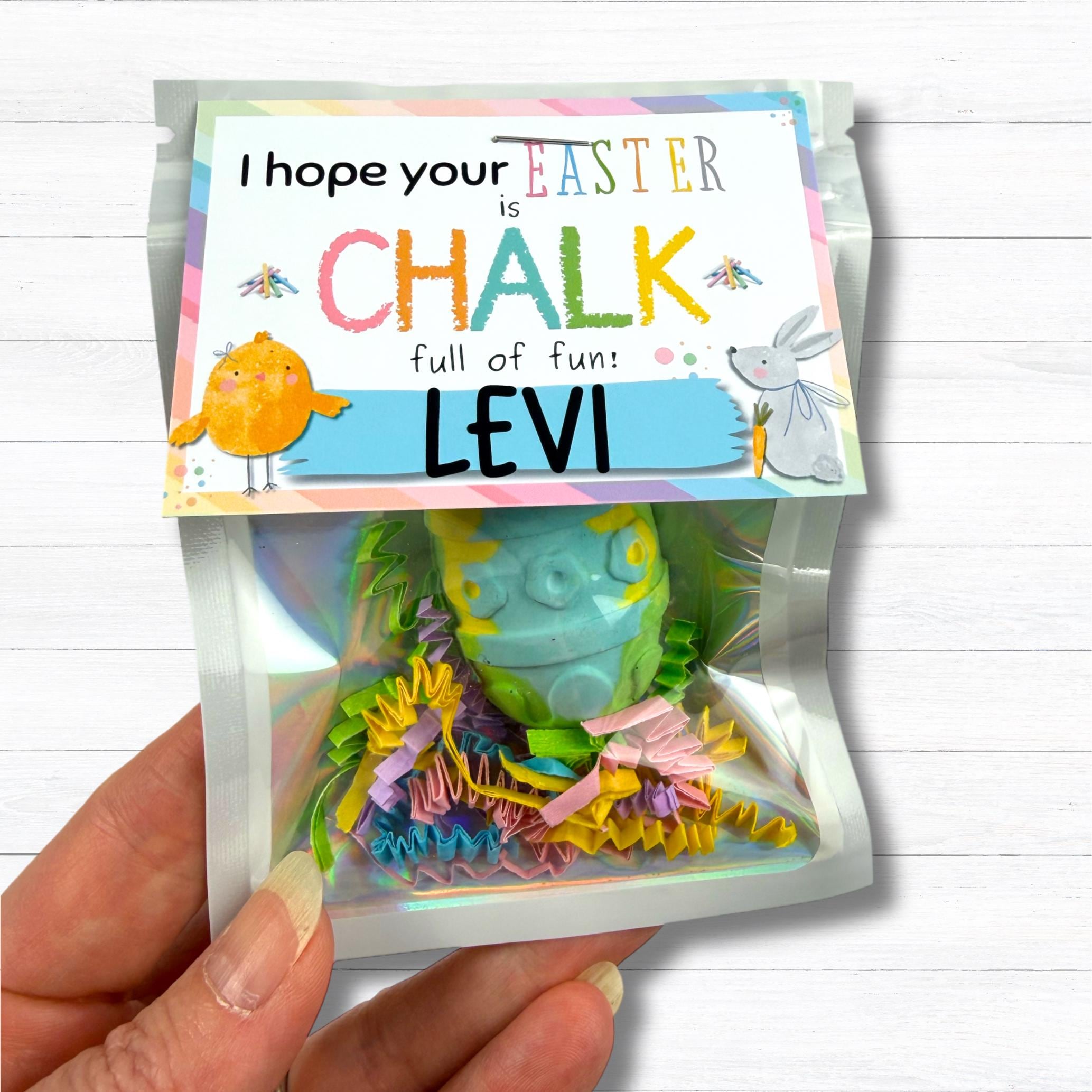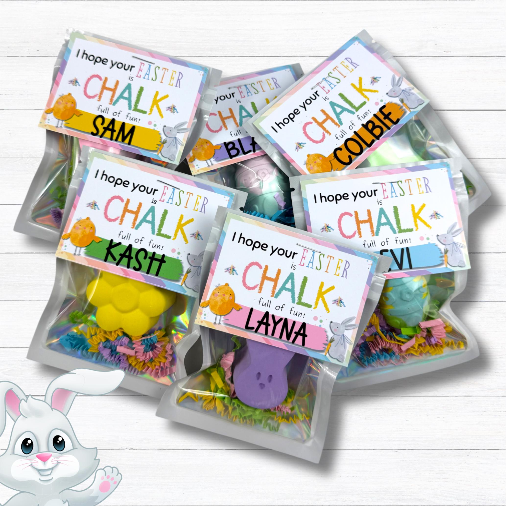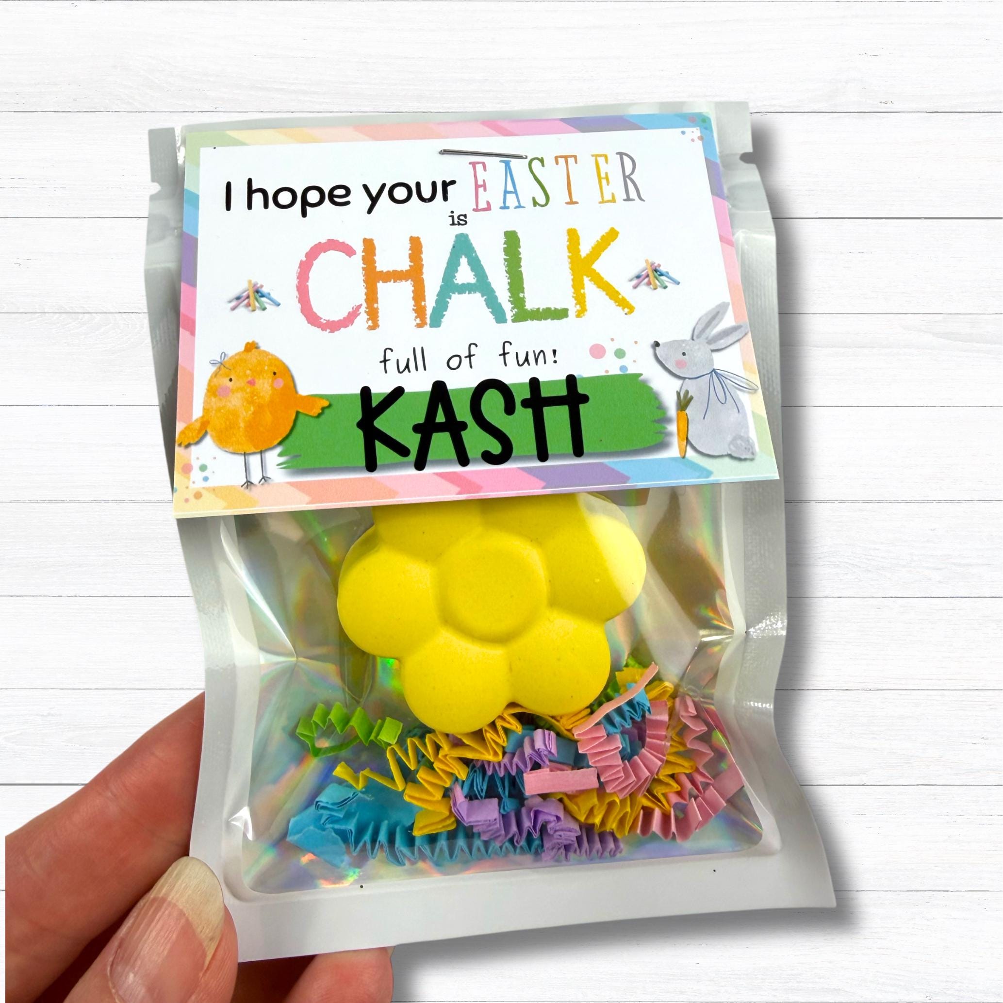 1 piece of Easter chalk sealed in a white zip bag with a personalized label.