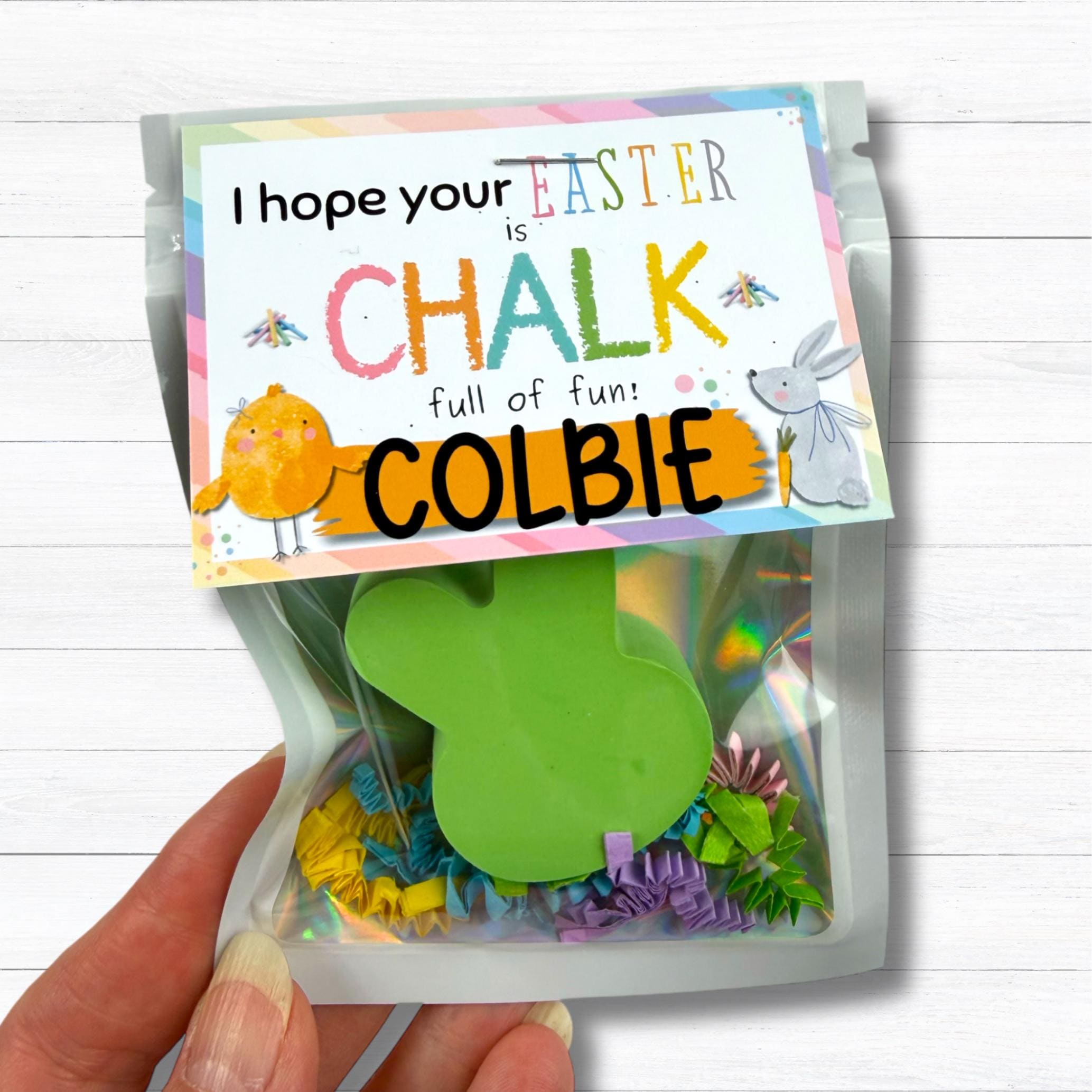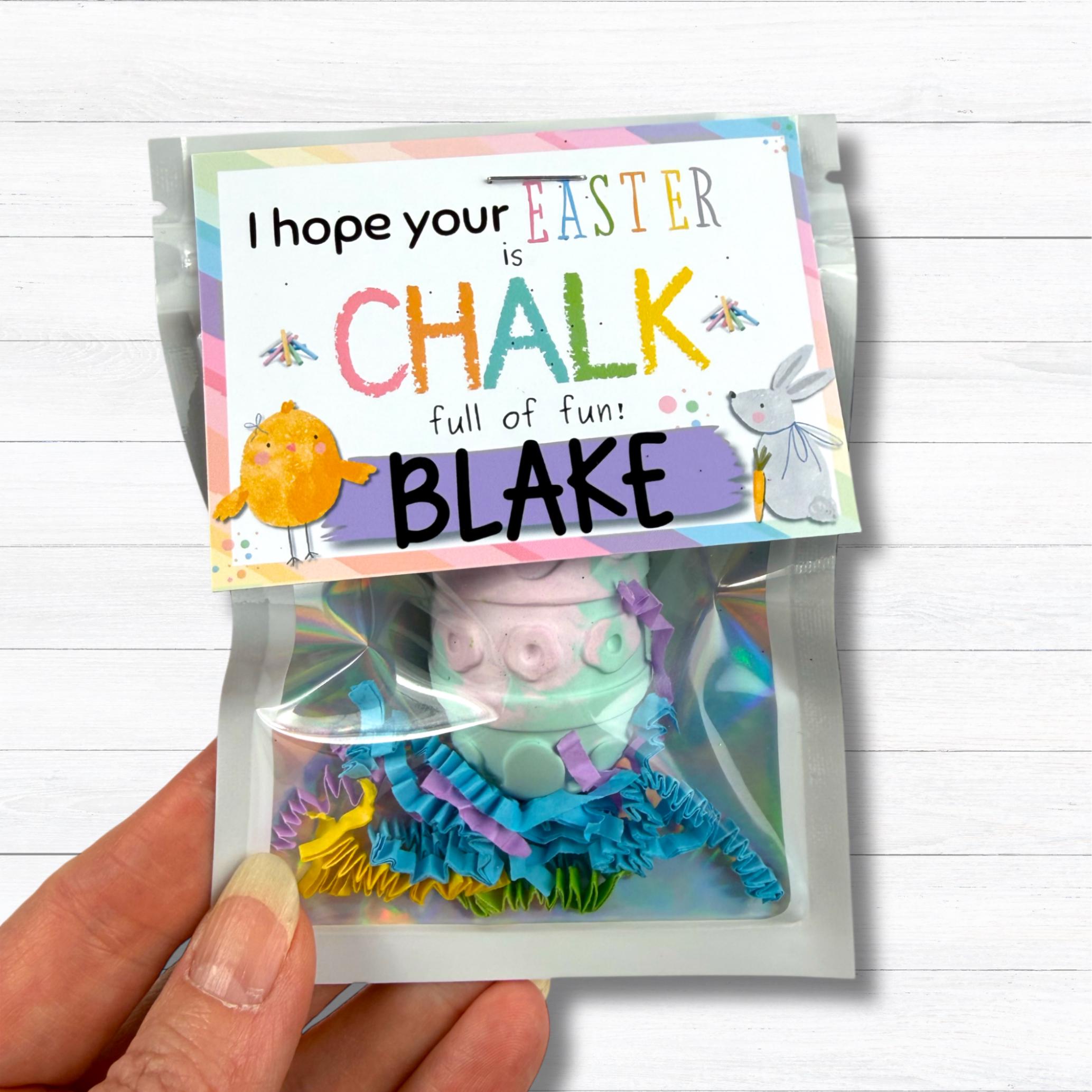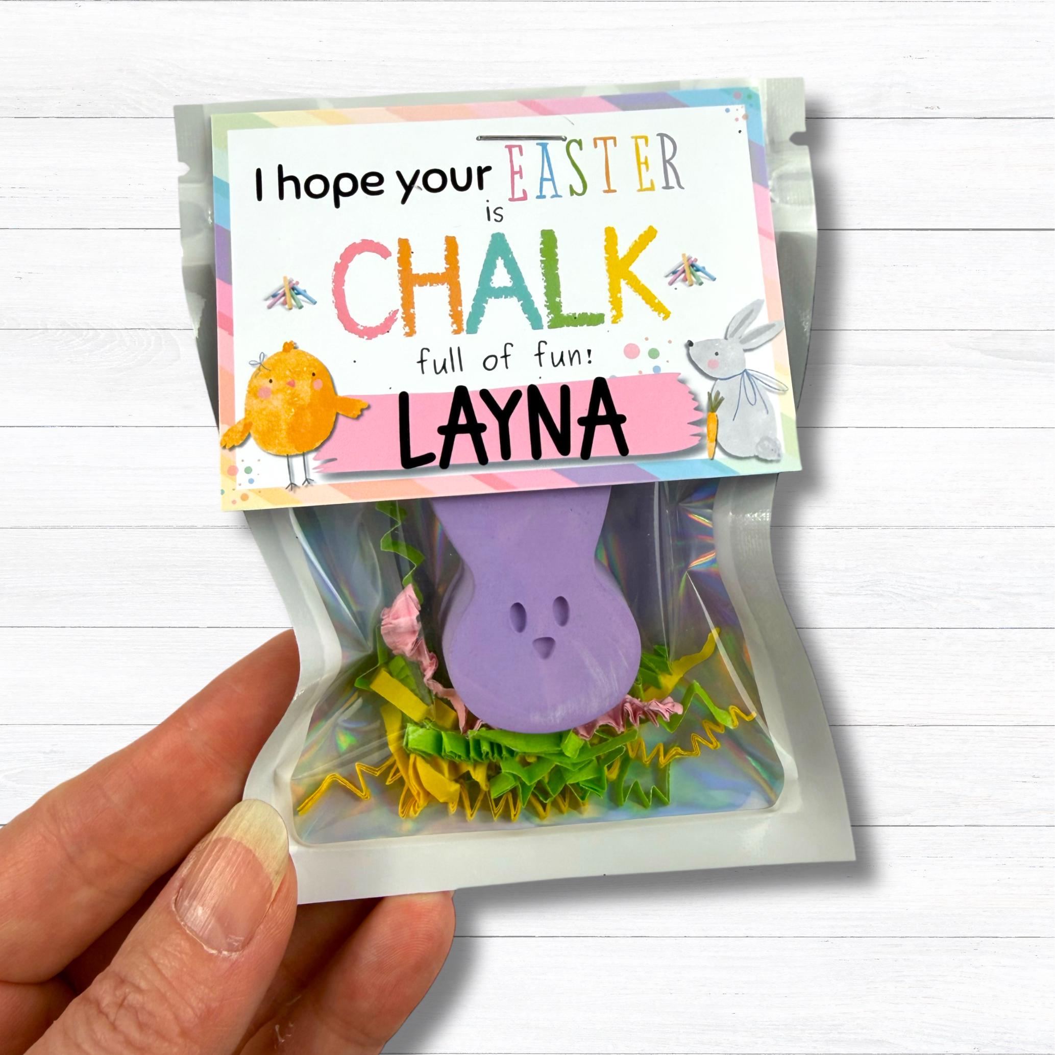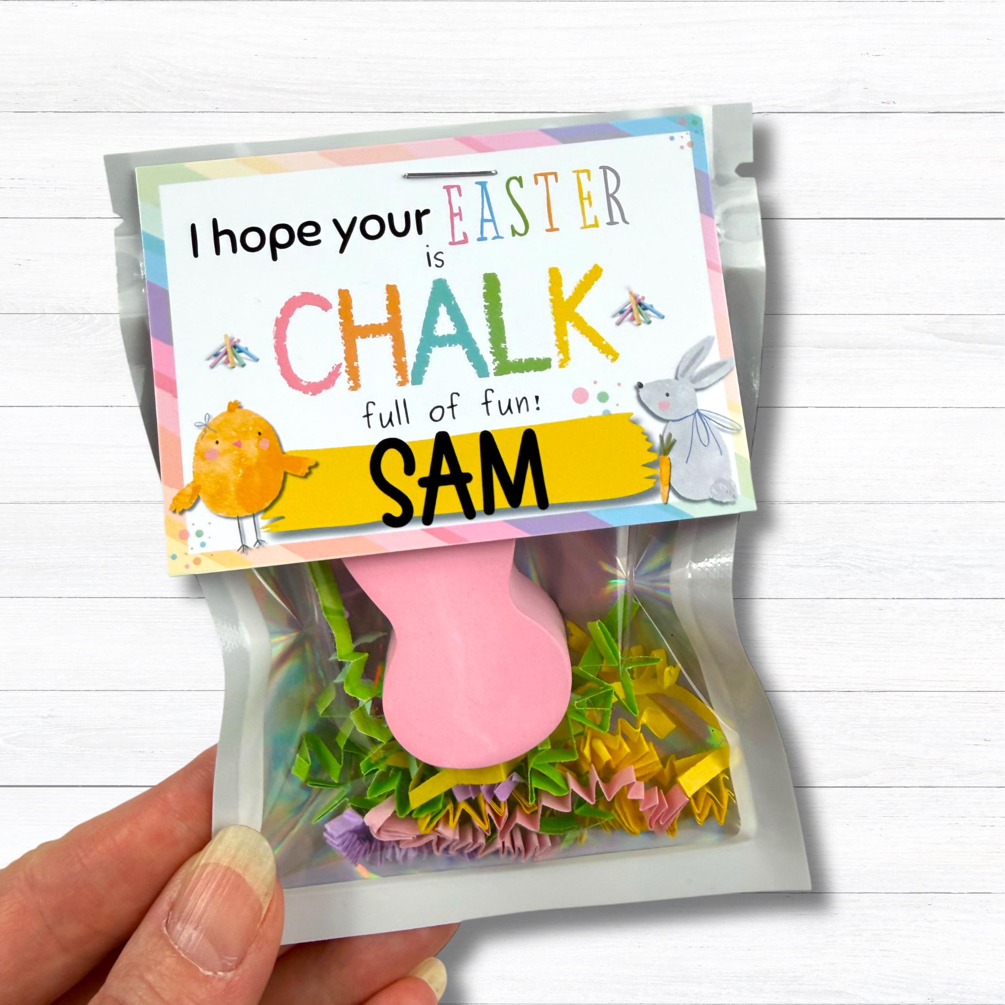 1 piece of Easter chalk sealed in a white zip bag with a personalized label.