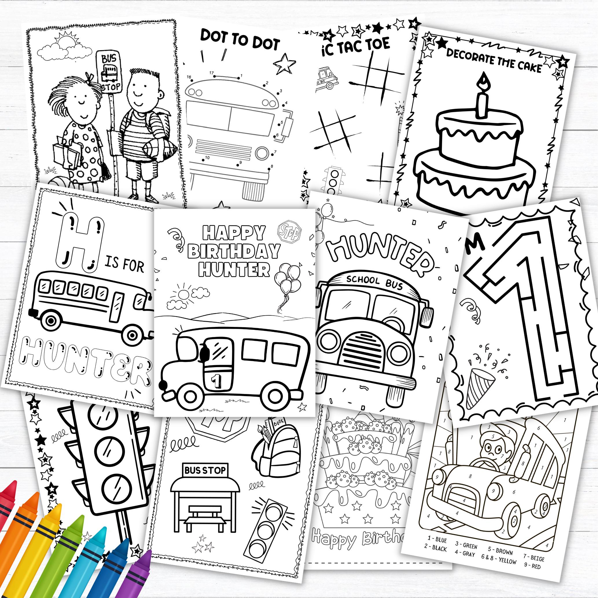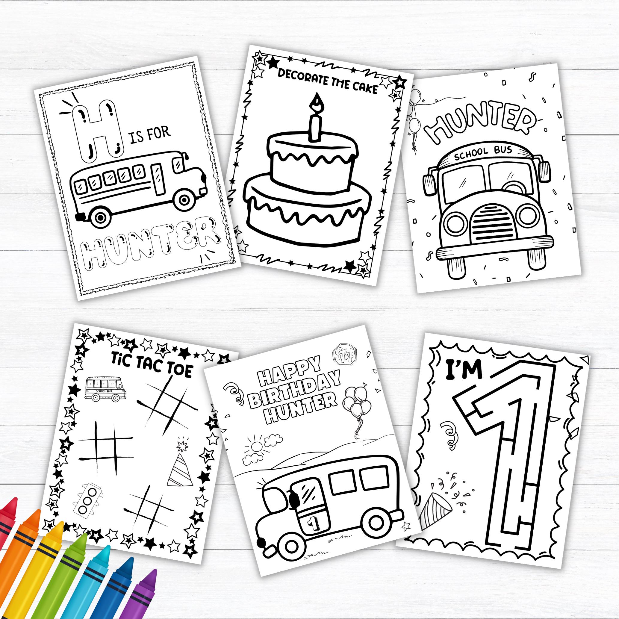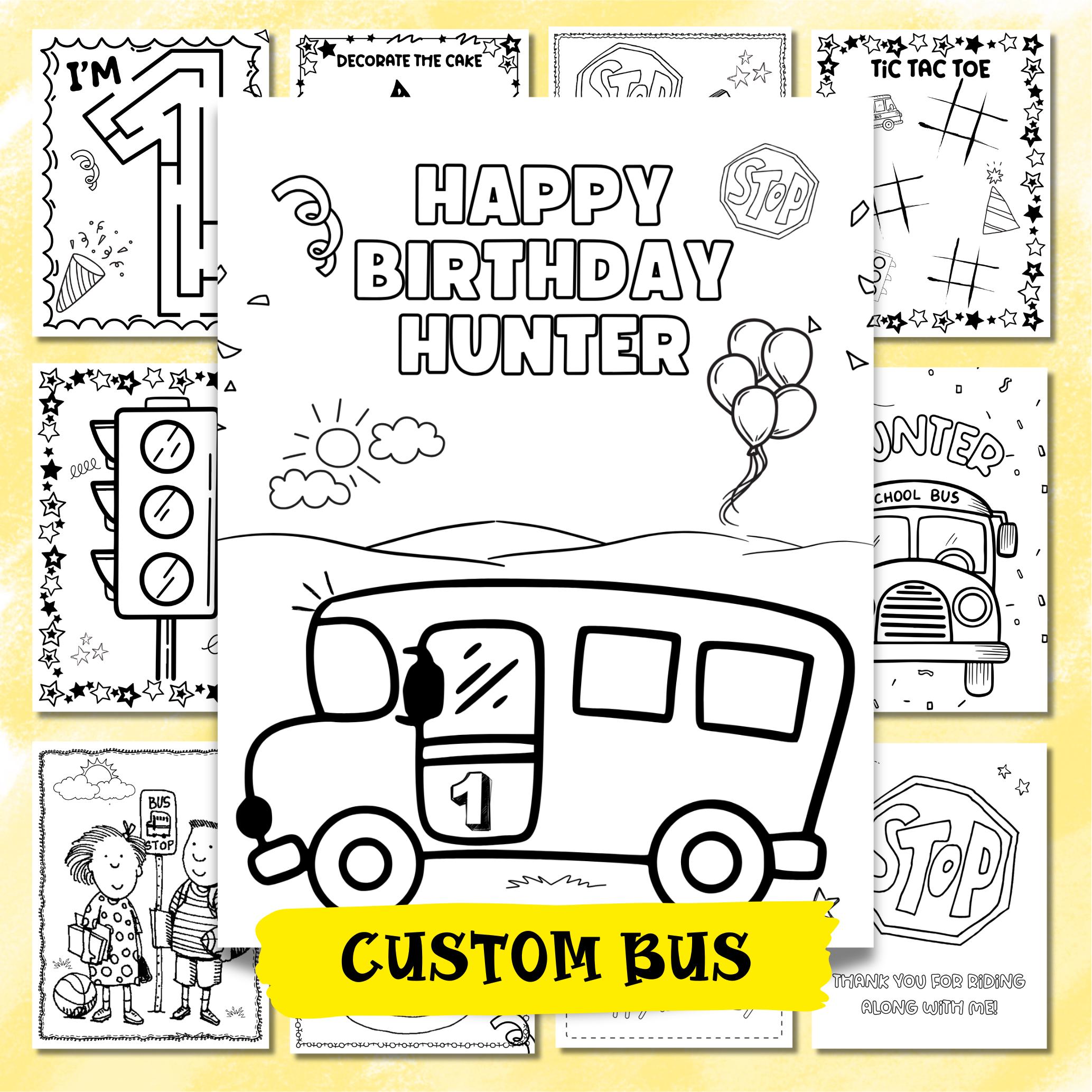 Make your little one's 1st birthday extra special with our personalized color bus-themed coloring pages! Perfect for a "Wheels on the Bus" celebration, these custom coloring pages keep kids entertained with fun bus activity pages. Ideal as bus party favors, these printable bus favors make great additions to your bus party supplies. Instantly download our digital bus coloring book for a creative and engaging experience. Let the birthday fun roll with our adorable bus coloring pages! 🚍🎨
