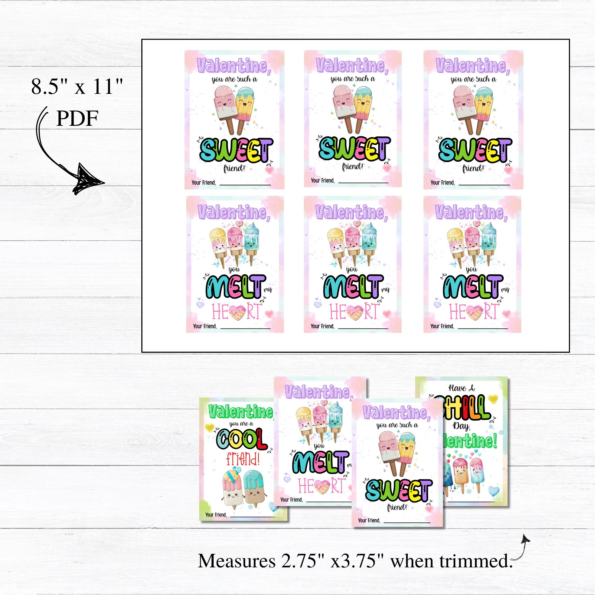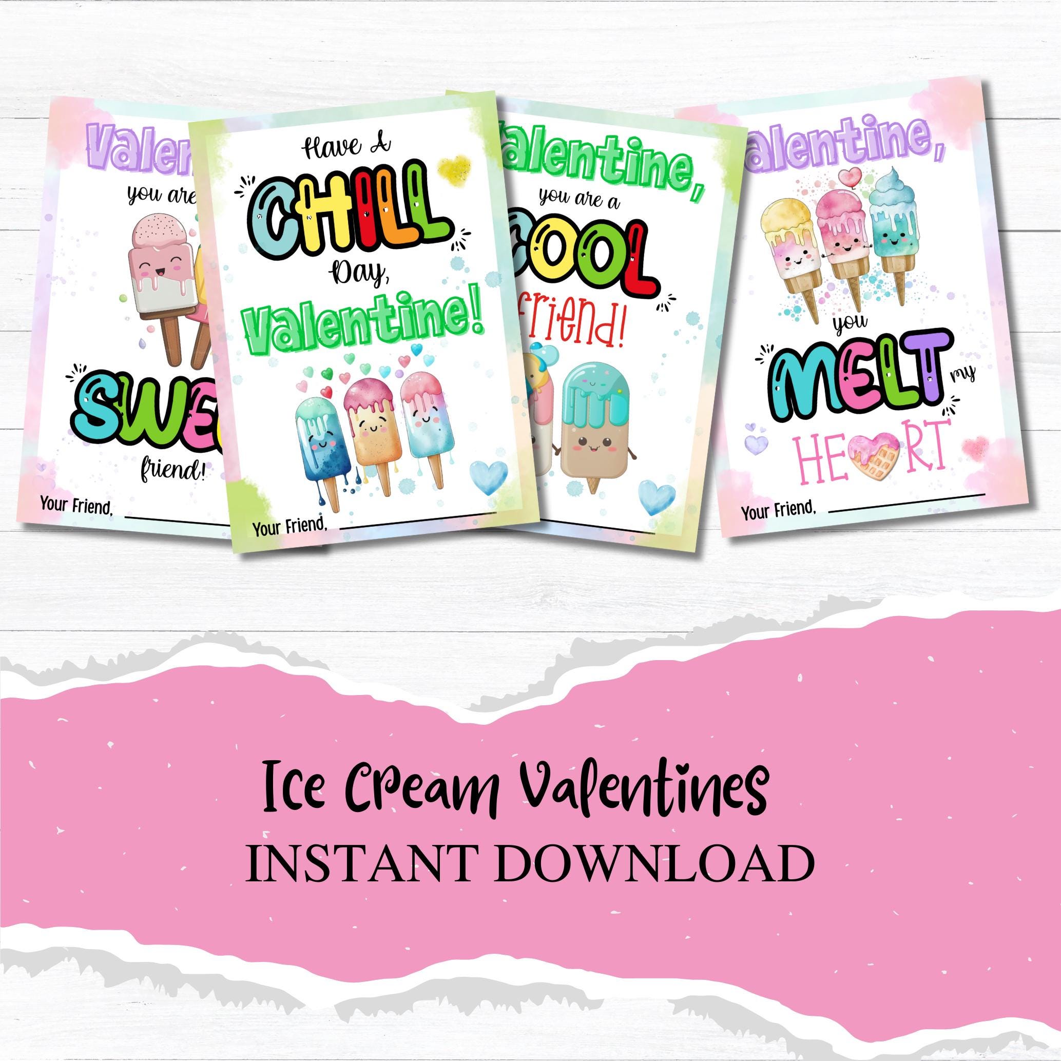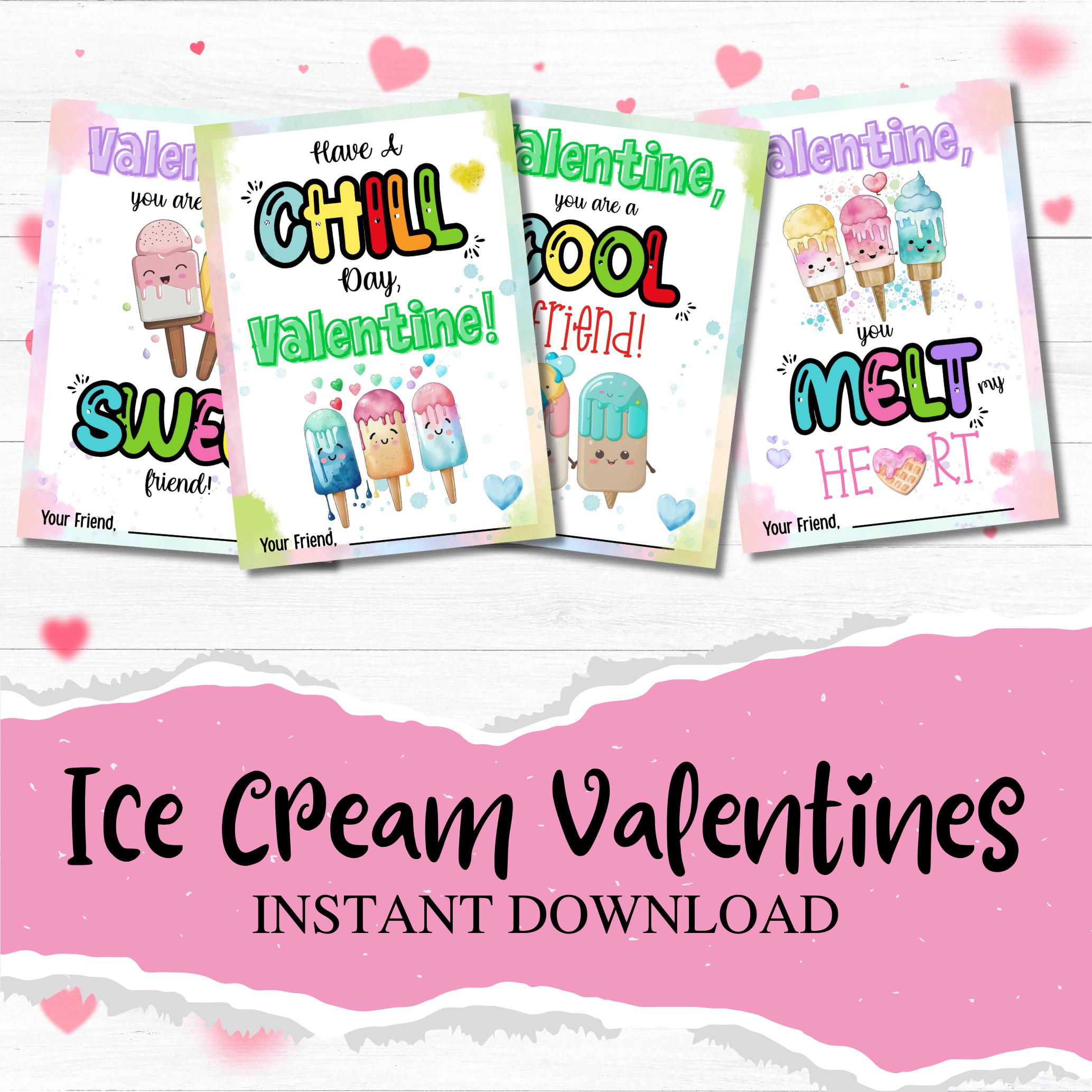 This listing is for an instant download, print-ready set of 4 ice cream themed Valentine's Day cards. The following files will be included with your purchase:
