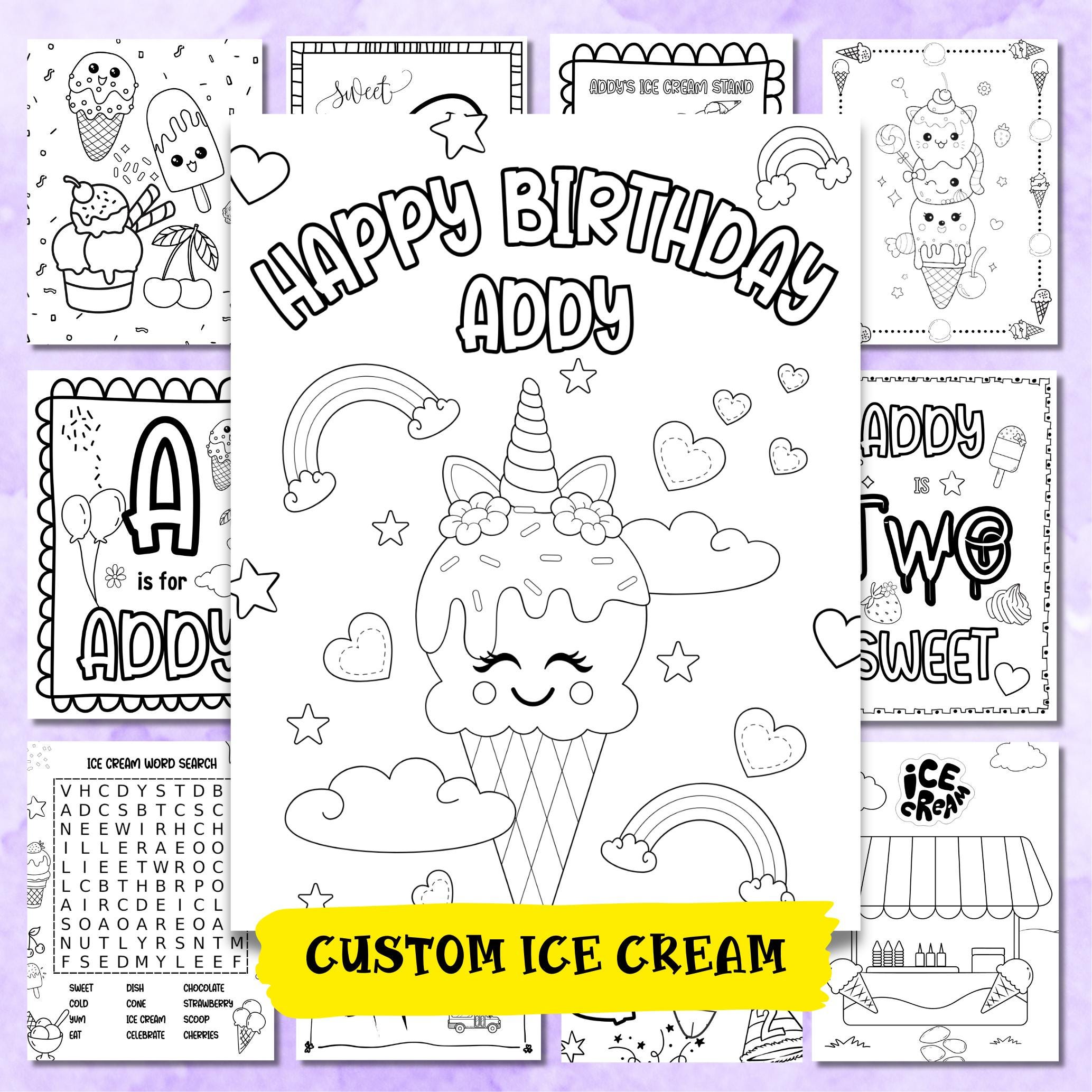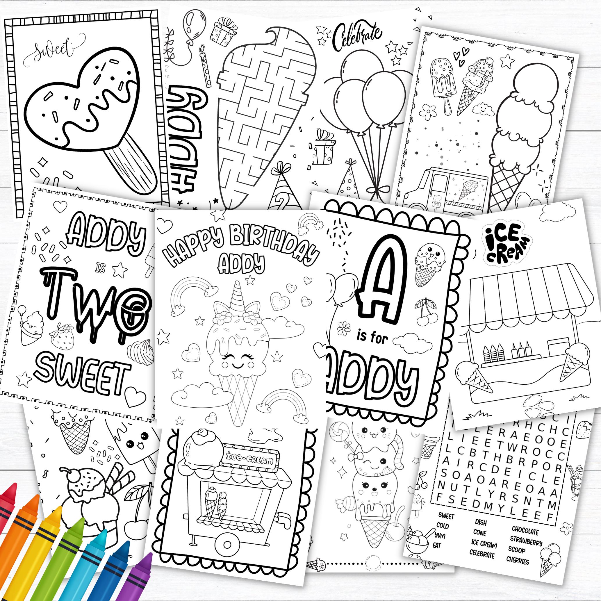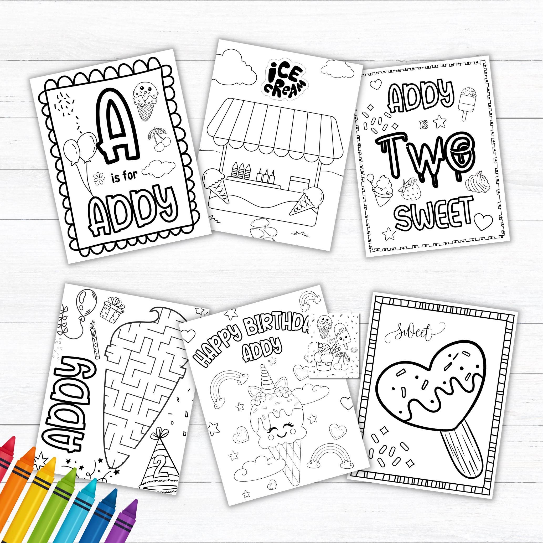 Add a scoop of fun to your Two Sweet celebration with our personalized digital ice cream coloring pages! Perfect for a 2nd birthday or any sweet celebration, this printable ice cream activity set includes fun coloring custom pages designed just for kids. Use them as ice cream favors, party ice cream supplies, or a creative ice cream activity to keep little hands busy. This kids coloring book is a delightful and easy way to add a personalized touch to your party with colorful, engaging fun!