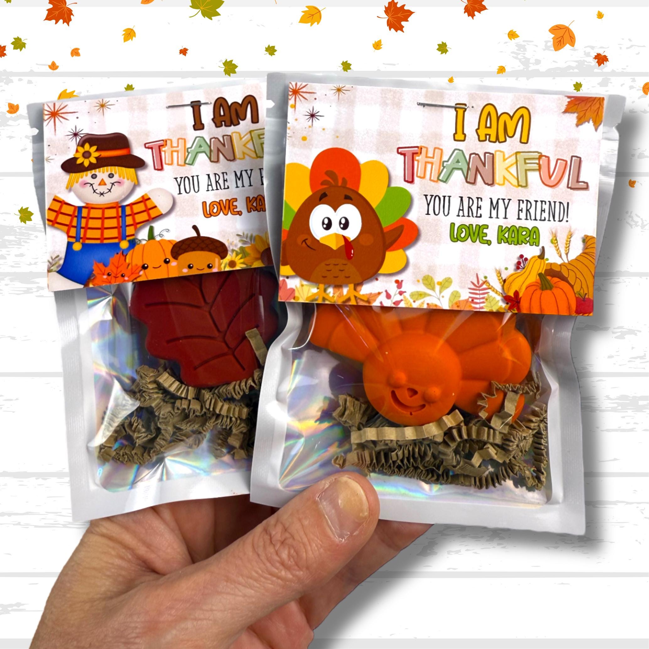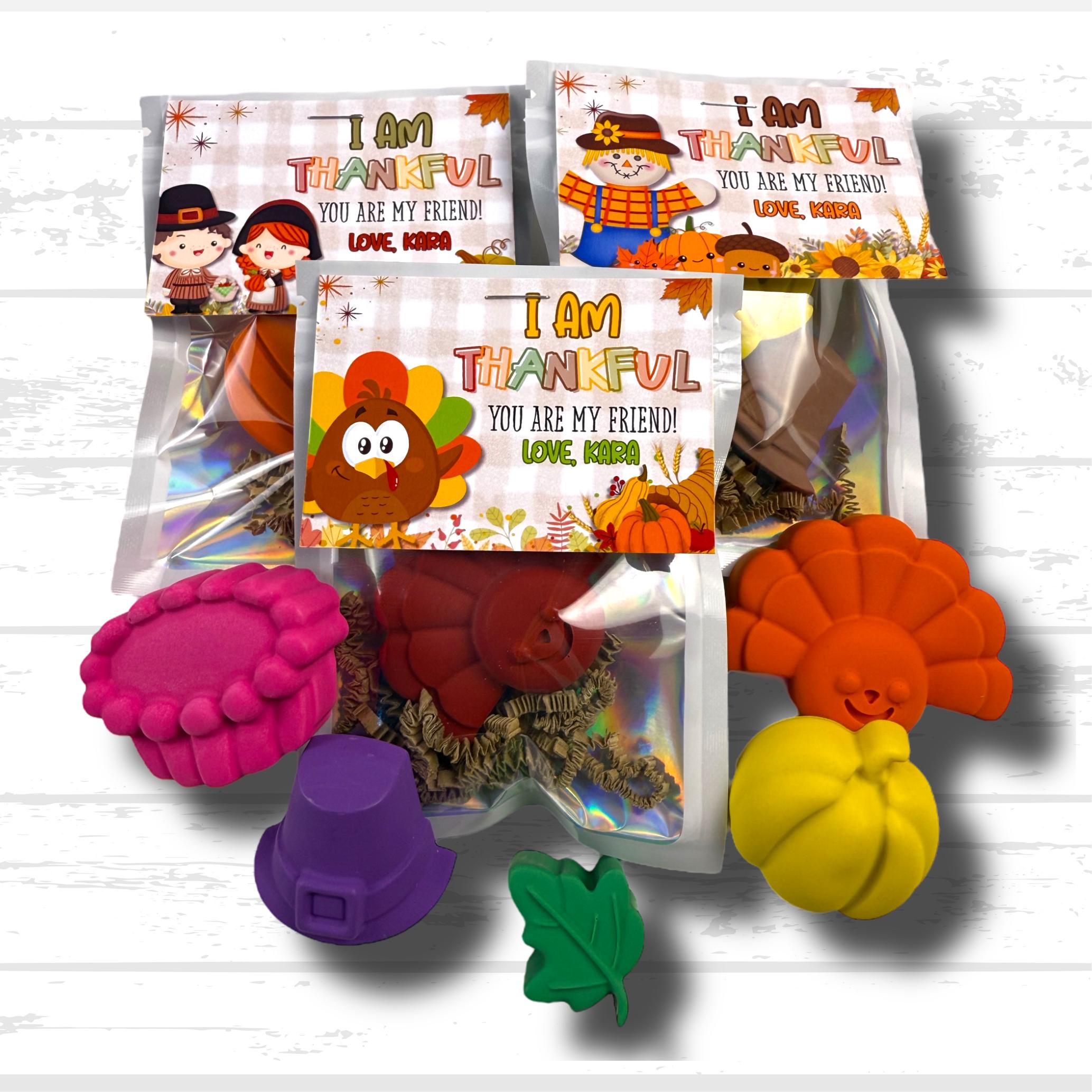 Add a festive touch to your Thanksgiving gifts with our adorable Thanksgiving Crayons—perfect for goodie bags, kids class gifts, or friends class favors! Each set includes fun shapes like turkey crayons, pumpkin crayons, and pilgrim crayons, complete with a personalized tag that says “Thankful for You.” These colorful crayon sets make the perfect class favors and are a creative way to celebrate the season with little ones!