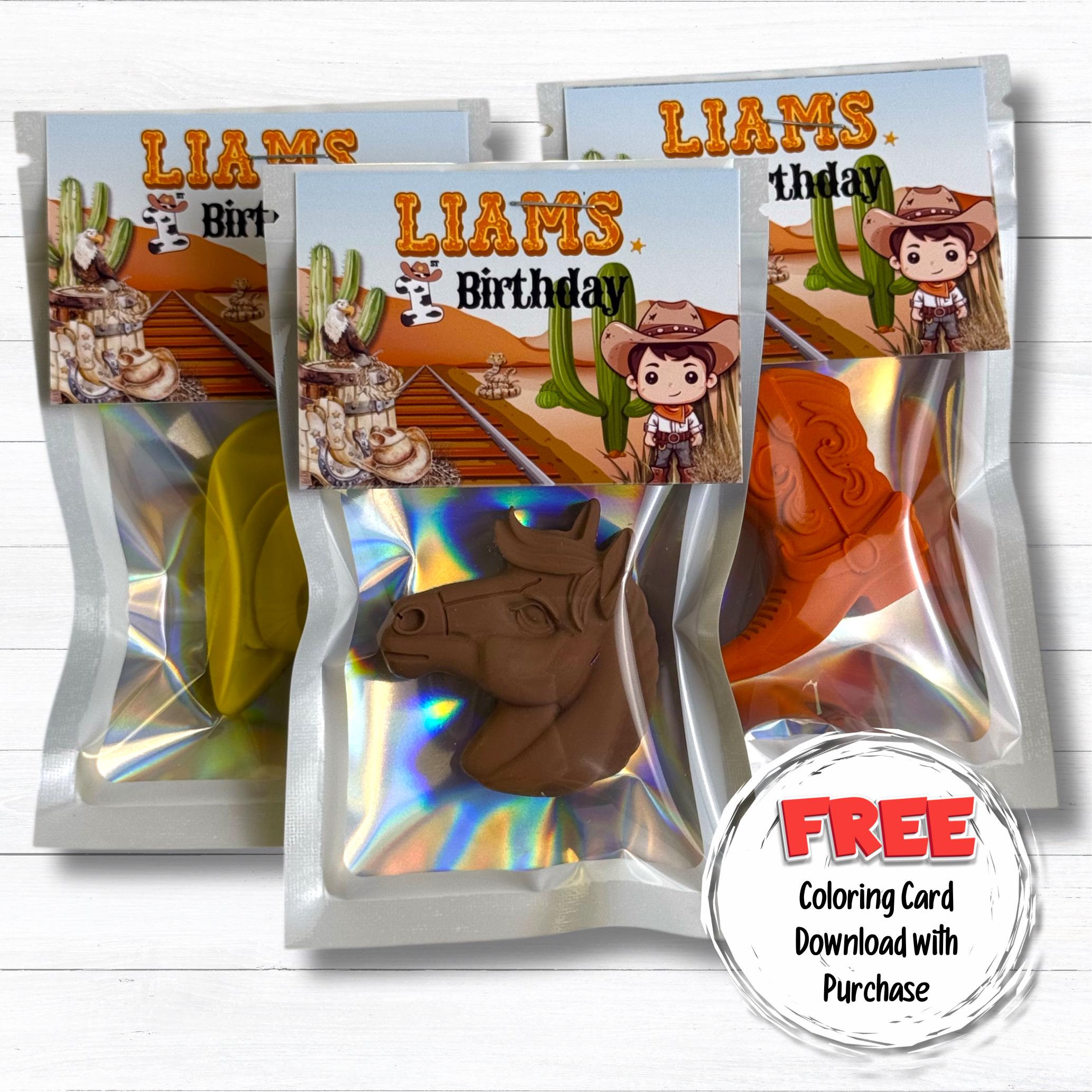 Each set features personalized crayons, making them a standout cowboy birthday gift for little wranglers. Ideal for western themed parties, these cowboy crayons add a fun, creative twist to any celebration!