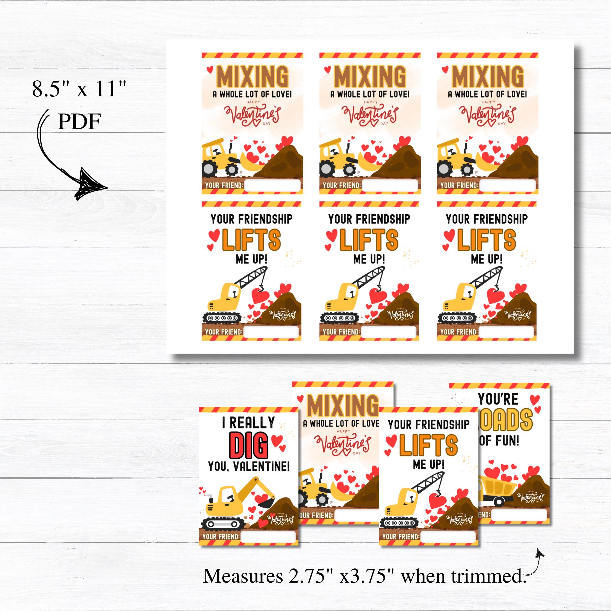 Each card features adorable construction trucks and can be used as construction valentine tags, printable valentines, or part of a valentine bundle. Great for toddlers and kids, these cards make the perfect class valentine gift for classroom parties or exchanges. 🛠️💛