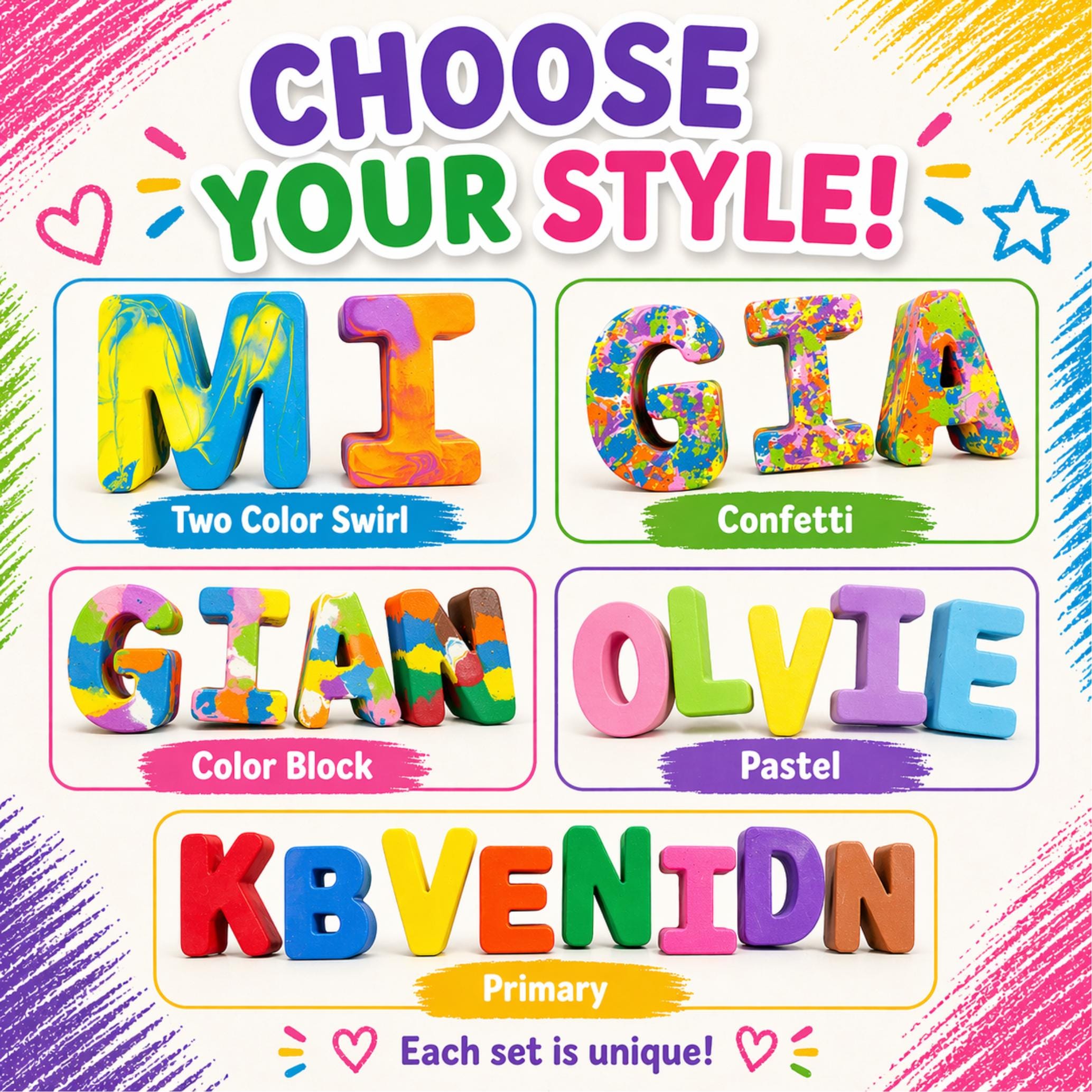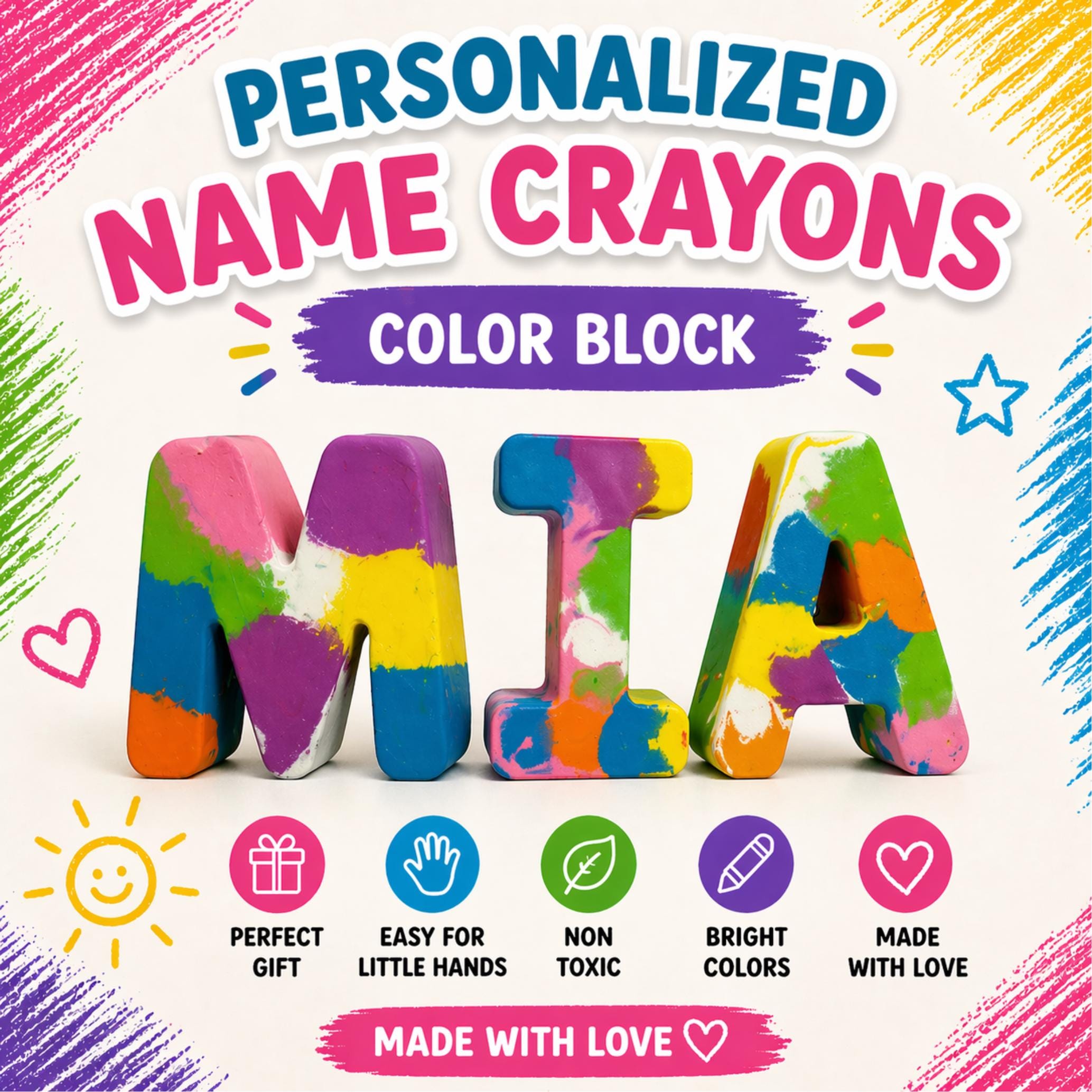 Perfect for birthdays, holidays, classroom gifts, or everyday creative play, these chunky letter crayons are easy for little hands to hold and built for hours of coloring fun.