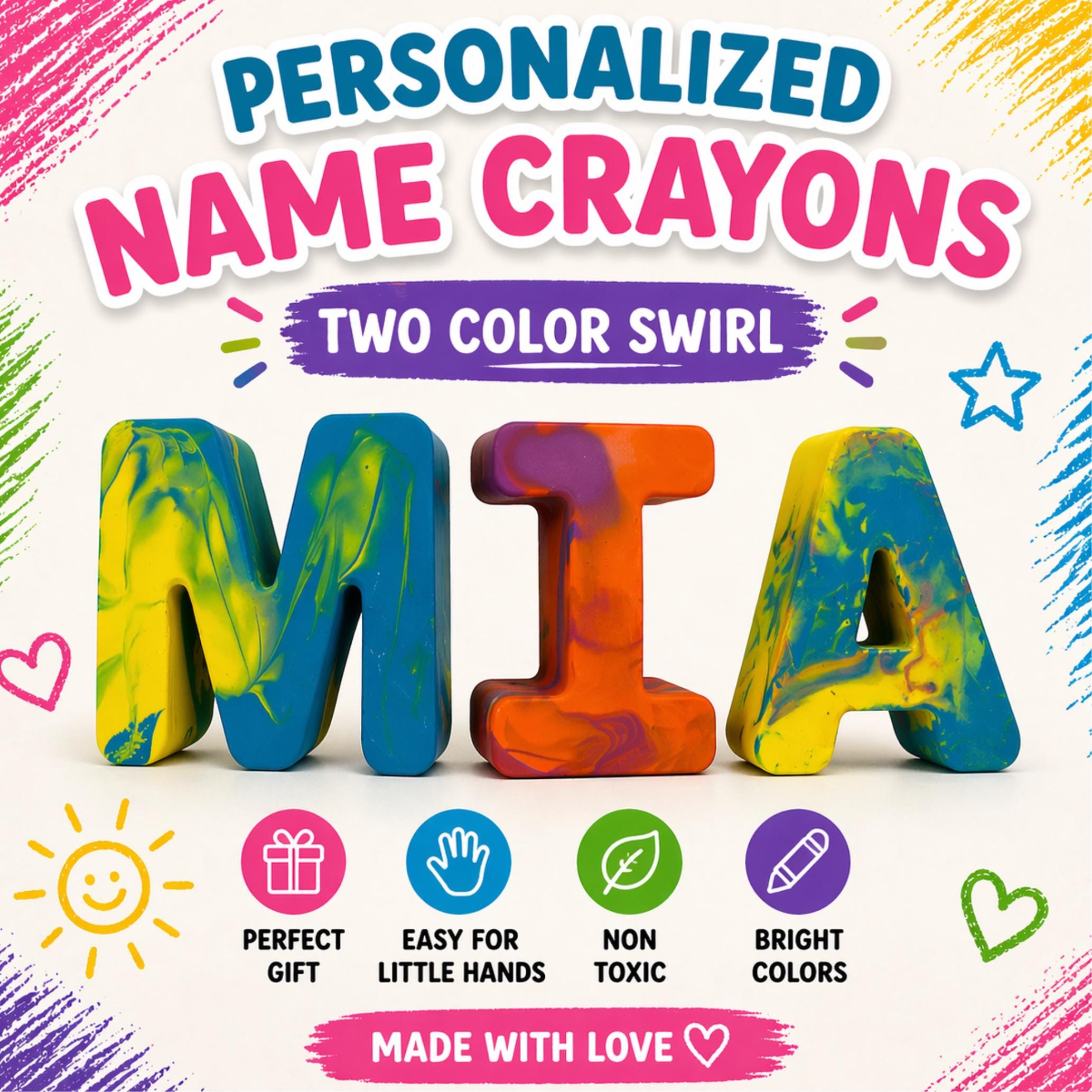 Make coloring extra special with custom name crayons designed just for your child. Each set is handmade and personalized with your child’s name, creating a fun and meaningful gift they’ll actually use and enjoy.